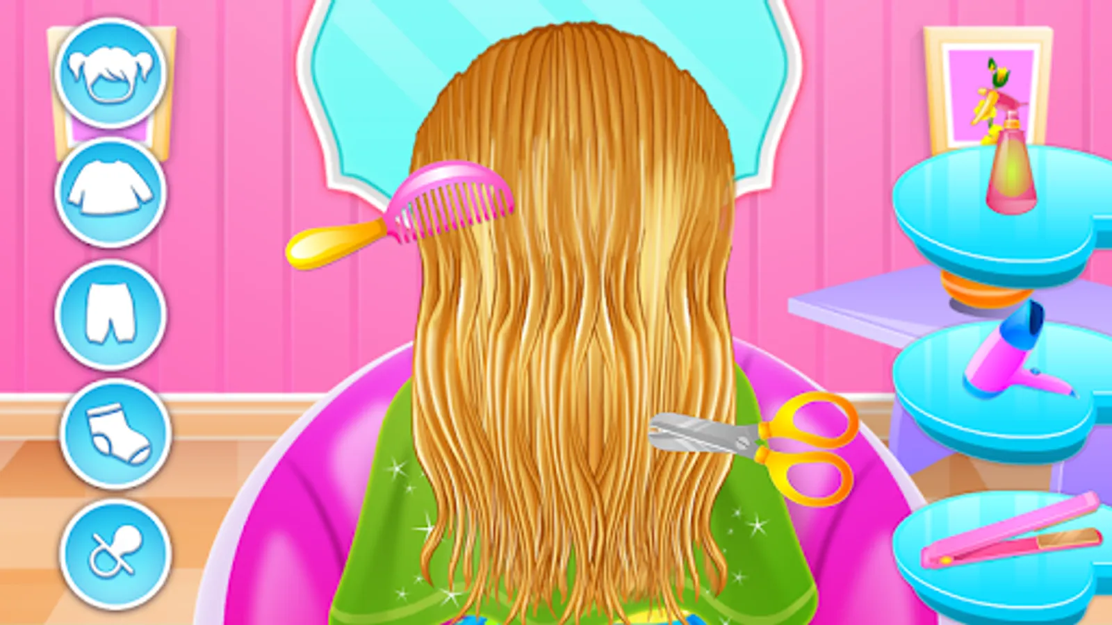 Once you've finished this you can go to the hair style step that implies having a good care of her hair and getting her a new aspect of it maybe adding some cute accessories and a shinny glam. Cut the messy hair and arrange the rest in a styled way so you could move to the other task you need to do to make this little baby girl happy. A real face makeover will definitely have a huge impact on her look and you'll be able to choose the way you make up her. Put on a very natural power to smooth her face and make sure her eyebrows are noticed with a touch of a pencil. Add an eye shadow to complete the aspect then a little bit of a colorful lipstick and why not, try some blush. Adapt your make up skills to this little challenge and get to know something about how is like to look after a baby girl.
