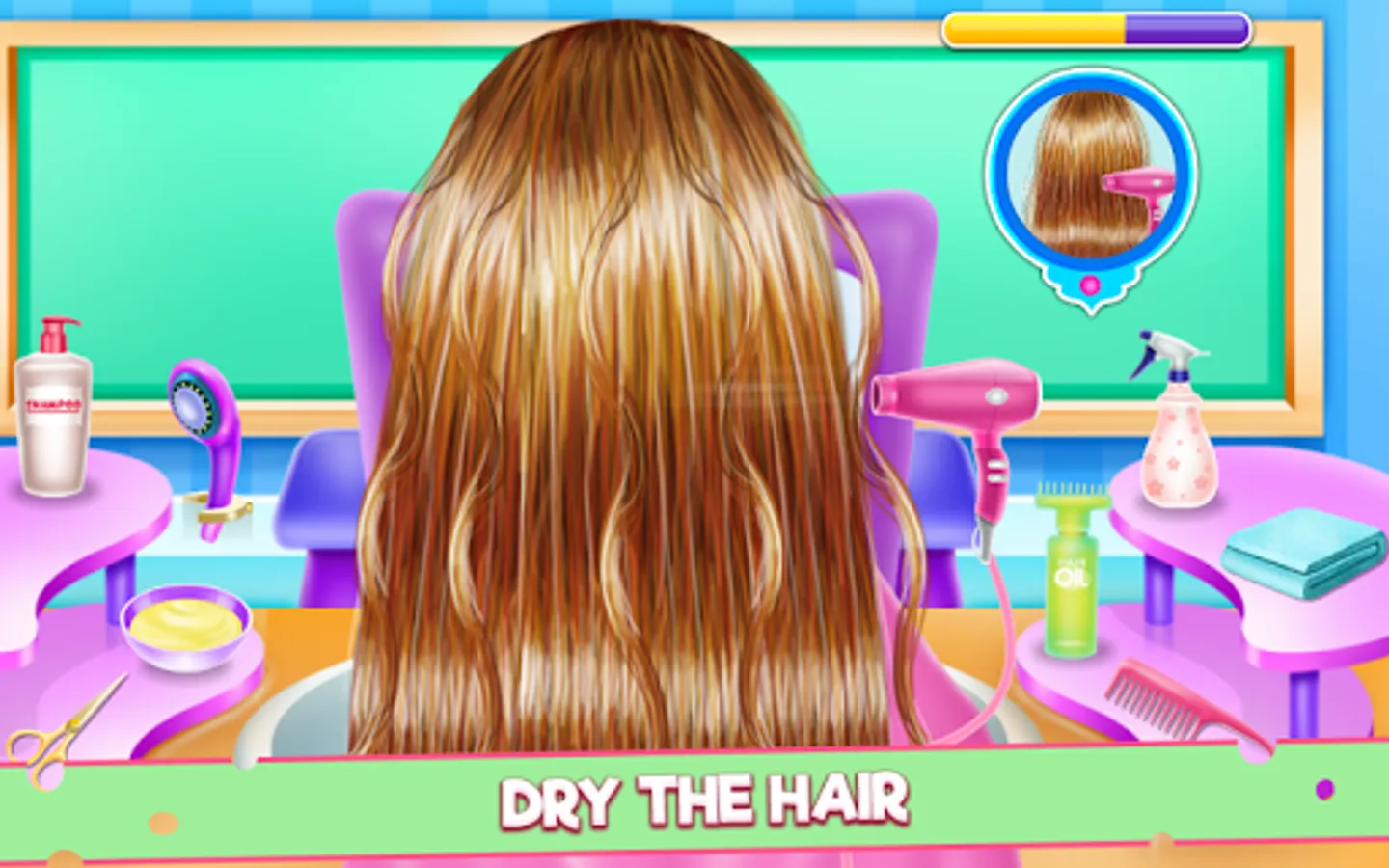 This baby girl is definitely asking for your professional help in this hairstyle game because either you are prepared to offer it or not you need to play it right away at least to try. First you are going to wash her hair to make it clean and nice, then you'll brush her to get rid of the extra hair, then you will make a nice braided hairstyle to make her happy. But the caring process is more than a simple washing, first you will cut off the damaged hair which has no chance of recovery. Brush the hair as long as the instructions will indicate and just apply the shampoo to offer that extra volume and shine. To prevent the dehydration and the split ends you must put on a special mask for the hair that you will do it yourself. Add the given ingredients, mix them and apply the final composition on the head. Wash the hair again, dry it and arrange the rebel hair yarns.