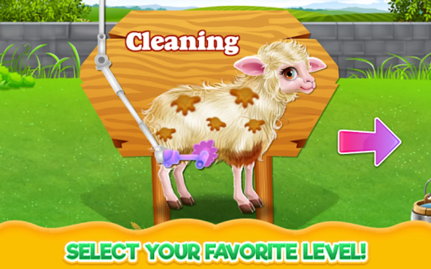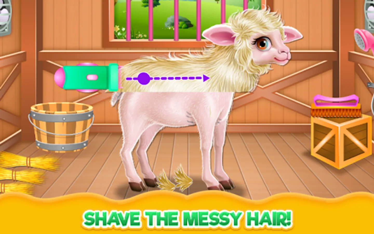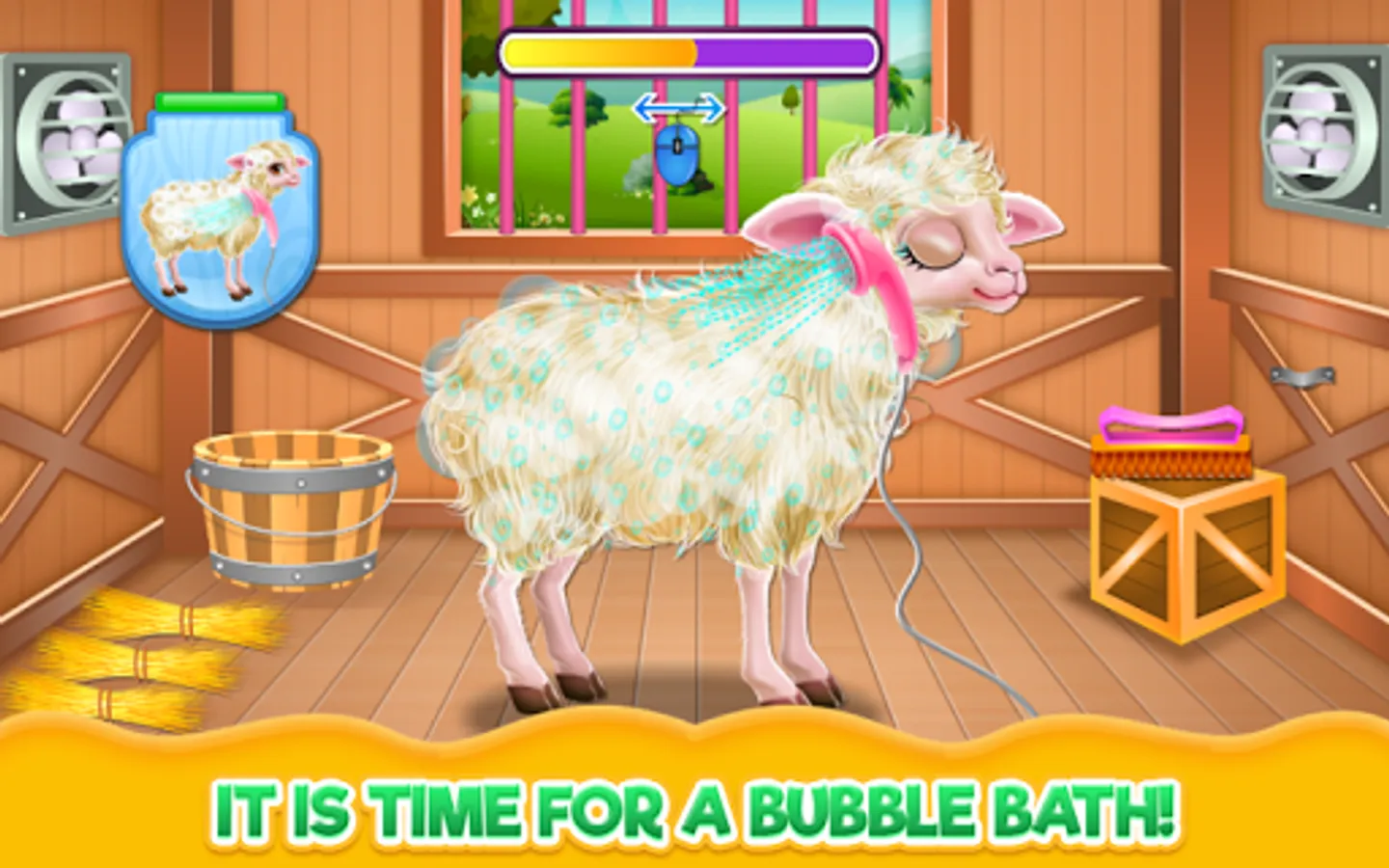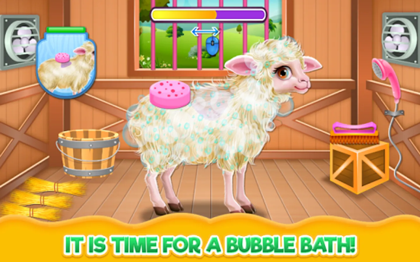 There are many ways a farmer could brag out with his achievements in the workplace, but in this animal game, you will prove to the world that your happy and cared animals are the reason you should shout out. But, first, you need to make sure all of them are good looking and pleased by your work. So this is how your job as a sheep owner begin. As you've seen the fur is not looking amazing and you are about to clean it and make sure the little lamb is happy with the new one. Start with the part where you remove that layer of dirt that spread all over the sheepskin, then make sure you apply some shampoo to clean the dust gather on it. Rub until the fur is going to have a brighter color and then wash the bubbles to see the results. After this, you'll use the razor to cut it down so the new one could grow back healthier and also you'll be selling the old one to gain some money because as you know the lamb fur is precious.