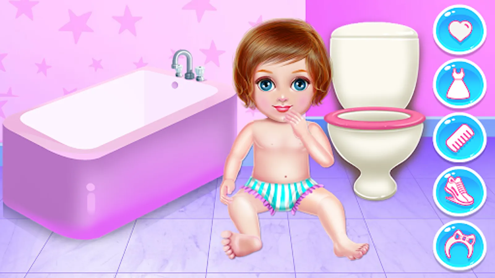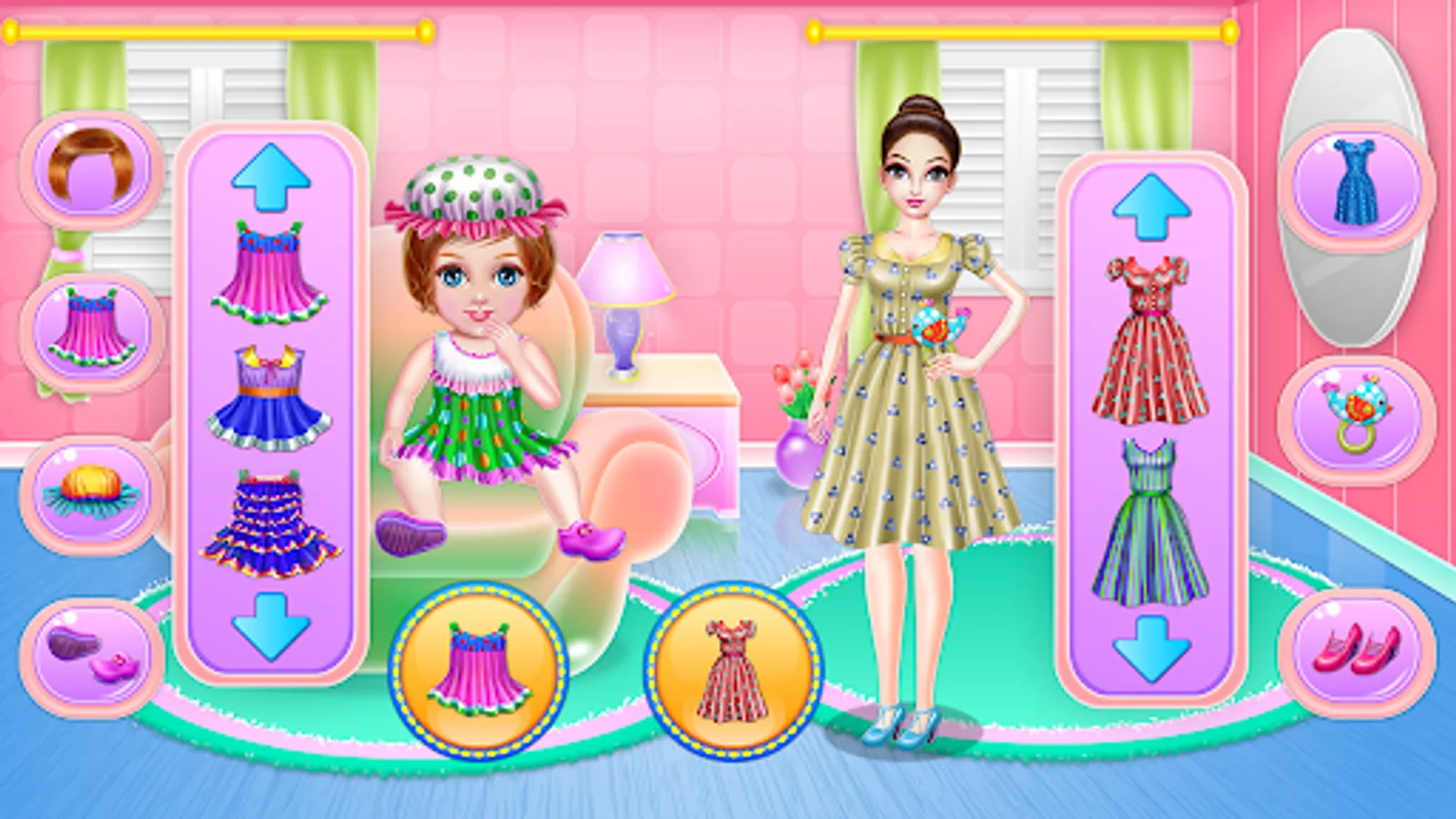 During this girl game, you'll learn many things and for sure you'll experience lovely time with this cute girl. Now, you will go into the bathing part to make sure the girl is clean and all washed out. Use the shampoo to wash her hair then clean the body and don't forget to play a little bit while you are in the bath to distract her from the real action. Accomplish all the steps and move to the playing part where you are going to entertain this girl and make sure she is having a good time. All that remains is to dress her up with a sweet outfit and cute accessories. Put on a dress or the overalls and match to it a pretty bow and nice shoes.You are able to dress the nanny too, so prepare two different style and try to combine them to see if they match. Now with your help, this nanny won't go crazy and you are more responsible and patient.