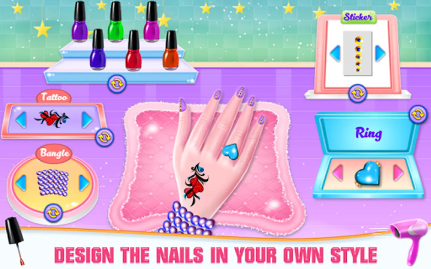 - Multitude of stickers and accessories to add on nails