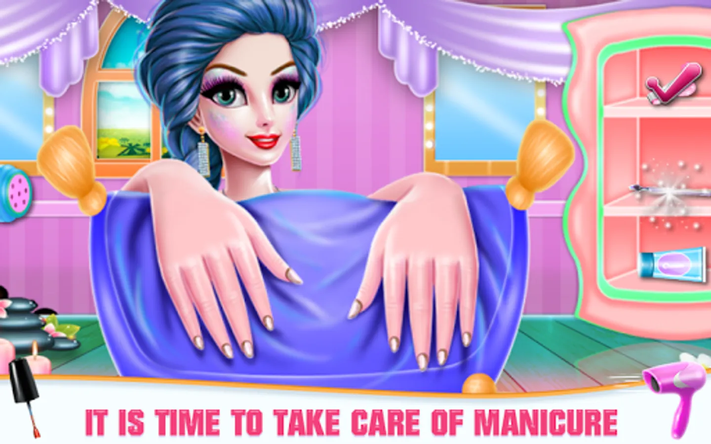 The "mom position" is actually a pretty hard and complex job, but everything is worth the trouble when it actually pays off. And that is all about in this girl game. You will get to help a crazy mommy to feel better again and no longer stressed out. To accomplish that you will need all your attention and devotion, because this particular game will offer an amazing opportunity to learn relaxation techniques besides the beauty tricks. As a professional nail expert you will need first to take care of the broken and destroyed nails which need an immediate intervention. Prepare the hands and get rid of those cuticles and cut off the extra nails too. Massage the hands so the mommy will feel totally relaxed. Apply moisturizer and make sure the nails are ready for the polish and decoration phase. This is where you are able to customize each nail aside with beautiful colors, a multitude of stickers, nice tattoos and even some cute accessories like a bracelet and a super cool ring. The other steps that have left are the hair care and the face spa.
