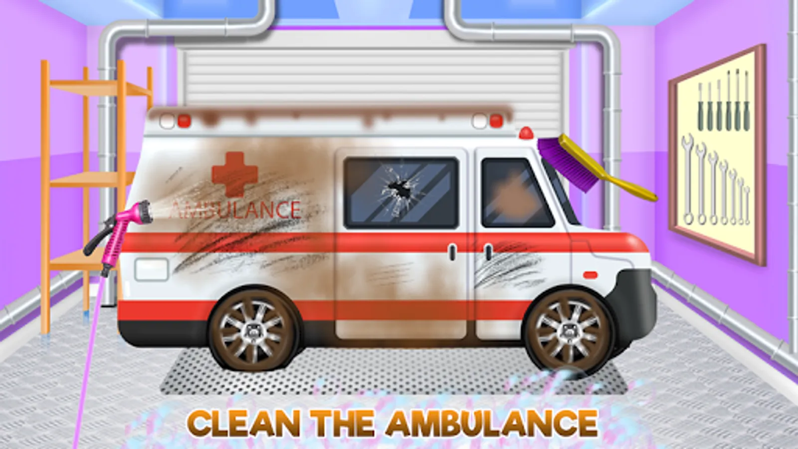 You can serve your country right and you can do it by simply practicing this car game where not only that you will have in your custody the emergency vehicle of your state, but you also get to recreate their design and you will be able to put your mark in there. So use the tools you have and try to make each task in the way it should be done. Wet it, add shampoo, rub the dirt and dry it all. Wash well the smutty window, add the missing piece and handle all those scratches that are spread on the car body. The broken wheel needs to be pumped and when you are done the only thing that is left is the polishing phase where you actually finalize the aspect of each vehicle. You will begin with the police motorcycle and you go on with the fire truck followed by the ambulance car. You need to be aware of the importance of a proper functional car and you will ensure that the necessary standards are fulfilled. Once you get through the cleaning and fixing part you will be skipping to the designing step.Combine colors and textures, use your imagination and create a change in the aspect of the car, but don't be exaggerated when you combine colors so it will look perfect for the police car. Add some accessories to complete the attire, maybe some strangely shaped windows. Keep testing your abilities and try to add some innovative aspects to all of your cleaned emergency vehicles.