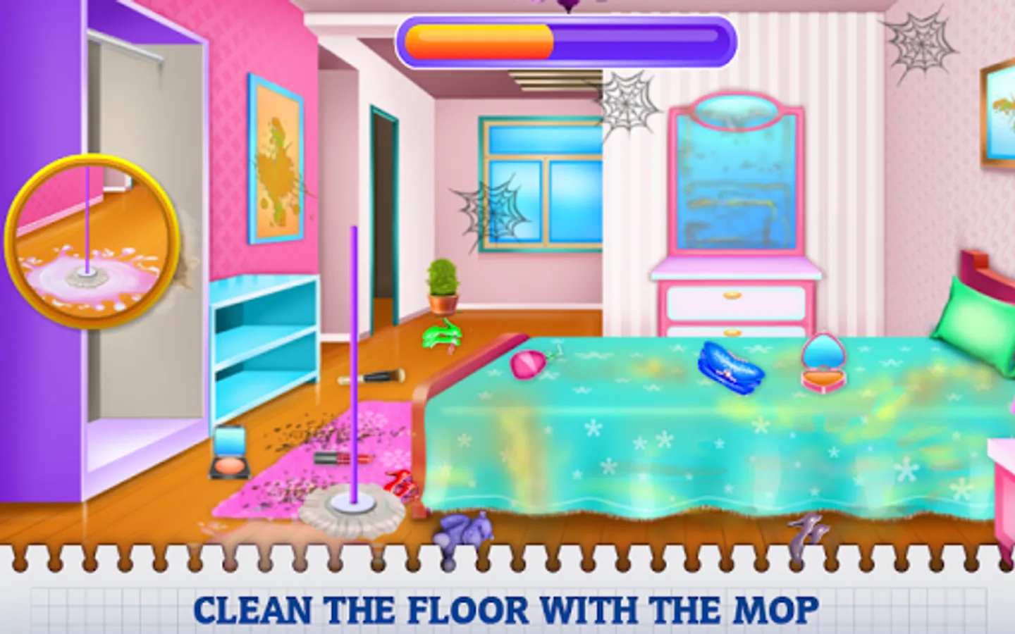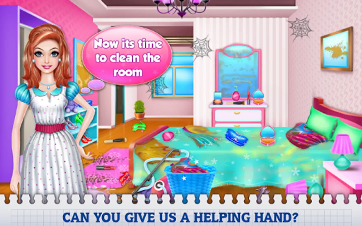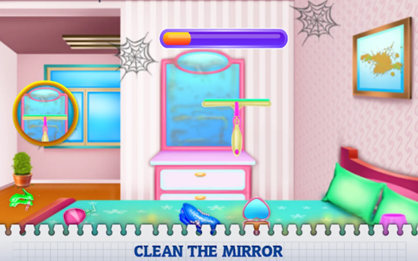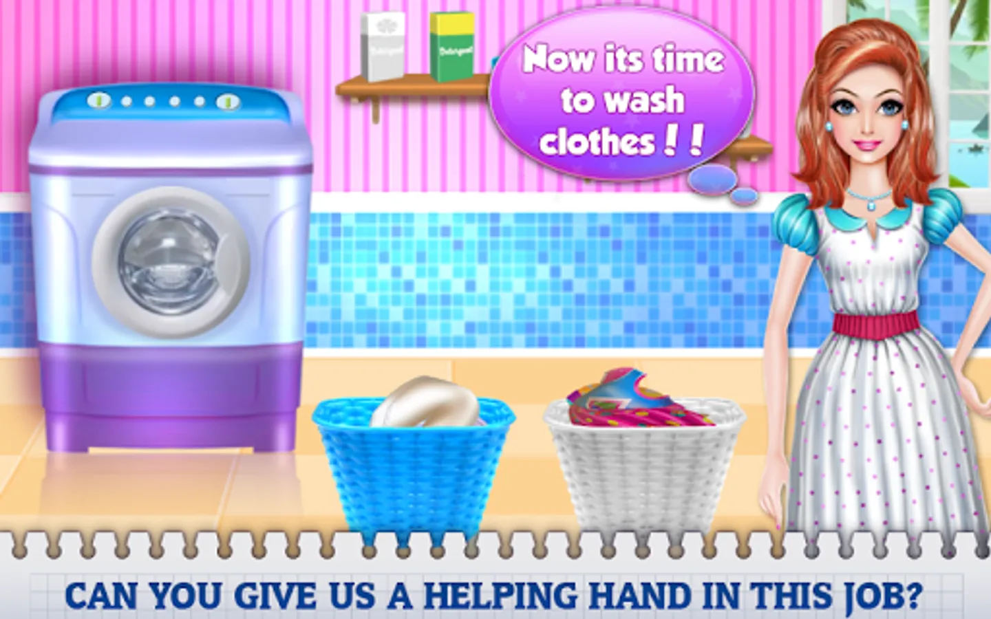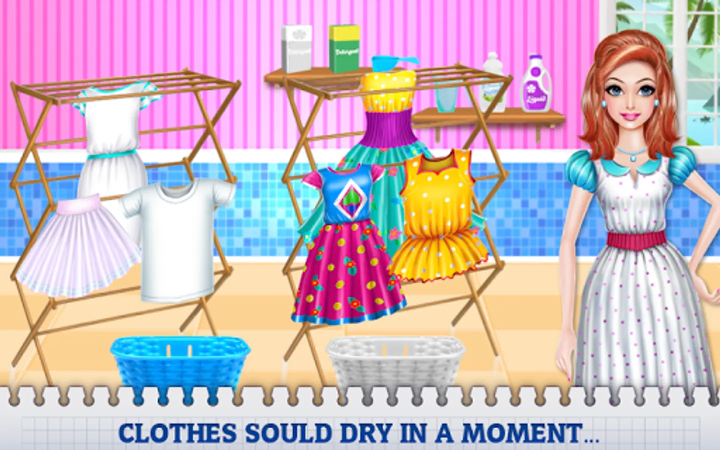 Take the responsibility in your hands and prove to yourself and everyone around you that you can manage to replace your mom in a laundry day without any problem. But to be able to do that you need to practice until you get the job complete. So this cleaning game is exactly what you need for that. As you might see from the beginning is actually a laundry challenge and a cleaning one as well. The room is a total mess and you have to make it clean again using those tools you dispose of. Each part is cleaned with a different kind of tool and you actually have to accomplish all the given tasks so you can move to the next step. First, you have to make sure you eliminate that stinky garbage that is spread all over the room and put it in the trash can. The spiderweb is all over the place and as soon as you clean that it might look even better, the mirror doesn't look good at all, remove the dirt from it too. The dirty clothes need to be placed in the basket so you could come back at them after. Arrange the object in the right order and make sure you get rid of that bug that is climbing on the wall. When you are done you have to take care of the laundry. Sort the white one from the colorful ones and separate them when you wash. Add detergent and laundry softener for a professional wash and once the program is over you have to take the clothes out and hang them in order to dry. Here comes the ironing part where you get the clothes and make sure you put them in the closet in a good shape. Iron each piece of clothing and arrange it in the wardrobe. After you fulfill this task you are not able to do all the chores in the house. Don't forget to have fun too.