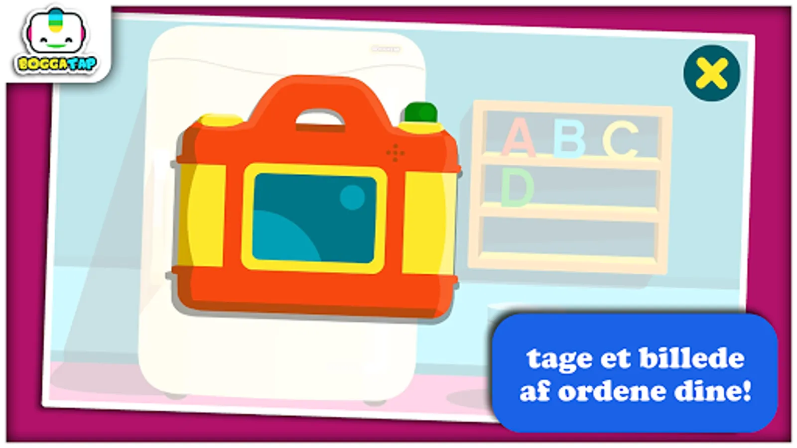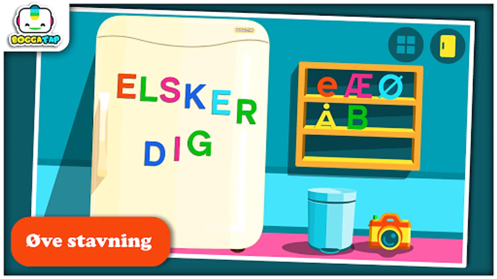 With Bogga Alphabet, children can explore the Danish alphabet by coloring uppercase and lowercase letters that transform into fridge magnets! Use the letters you create to put together simple words on the fridge and you can take a picture of the artwork! Fun and easy, focusing on the educational - without distracting elements like advertising.