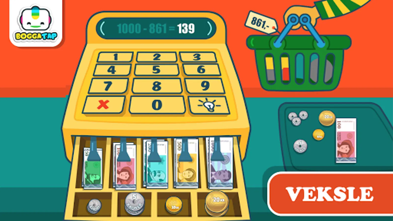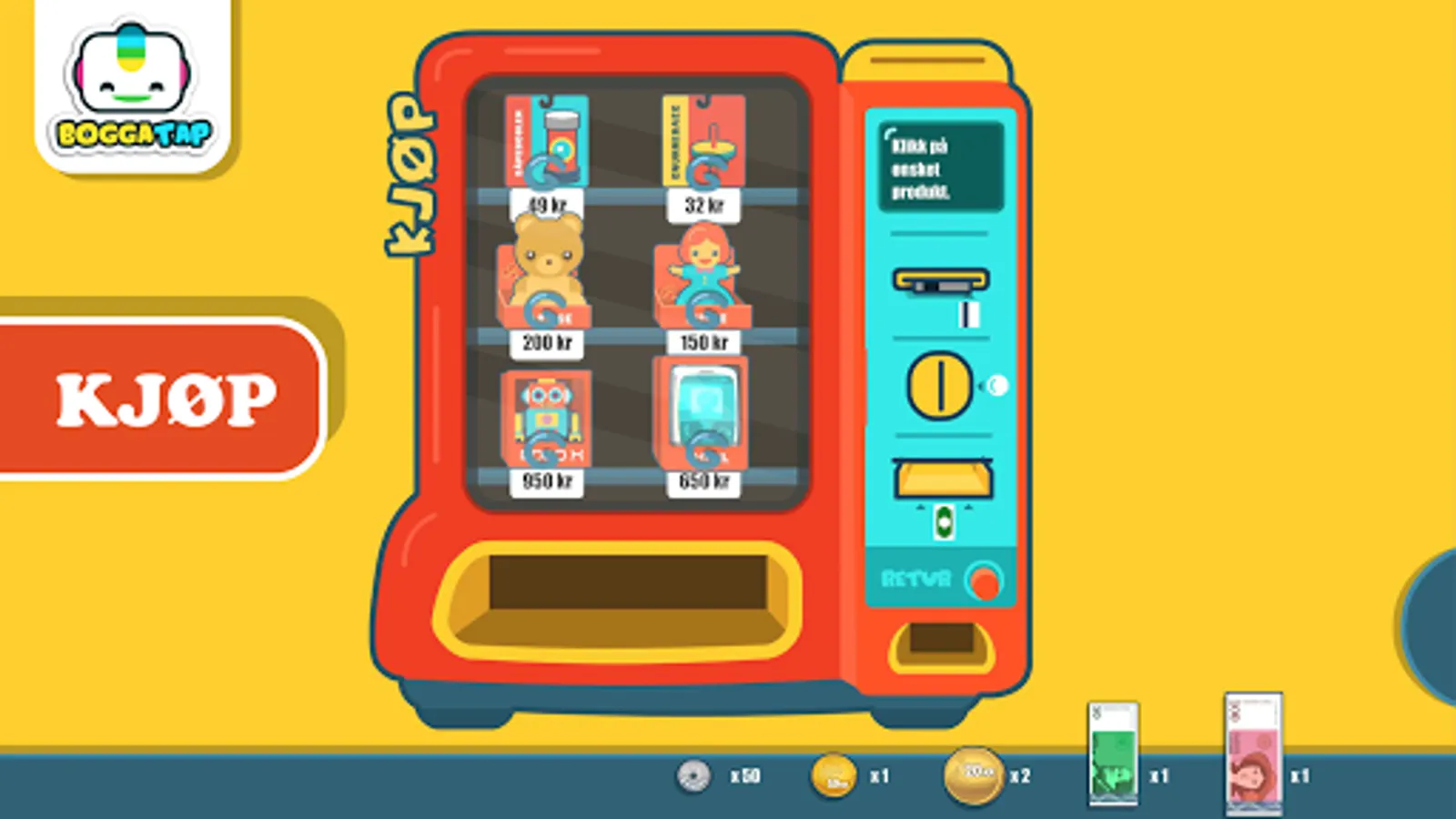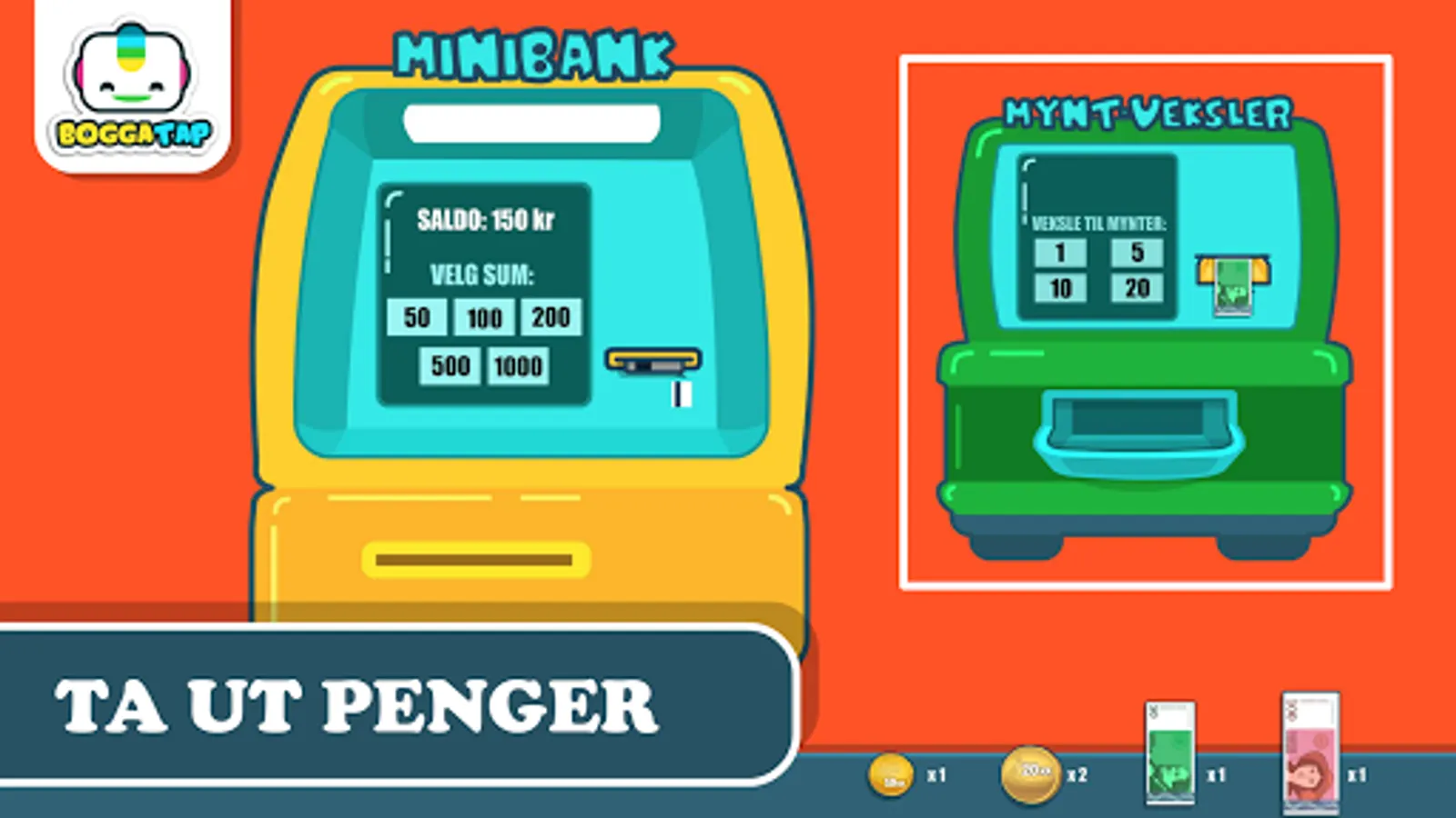 Learn about Norwegian kroner through fun-filled game. With Boggs Money, children can become familiar with Norwegian coins and notes, and learn about the exchange through practical exercises.