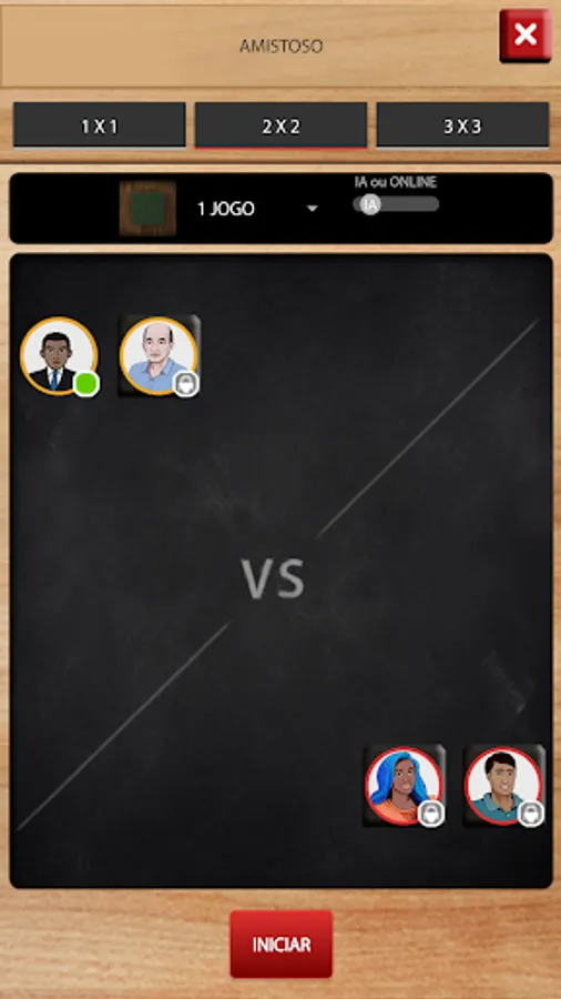 Choose between 1x1, 2x2 or 3x3 mode matches. Enter online matches in public rooms or password-protected private rooms.