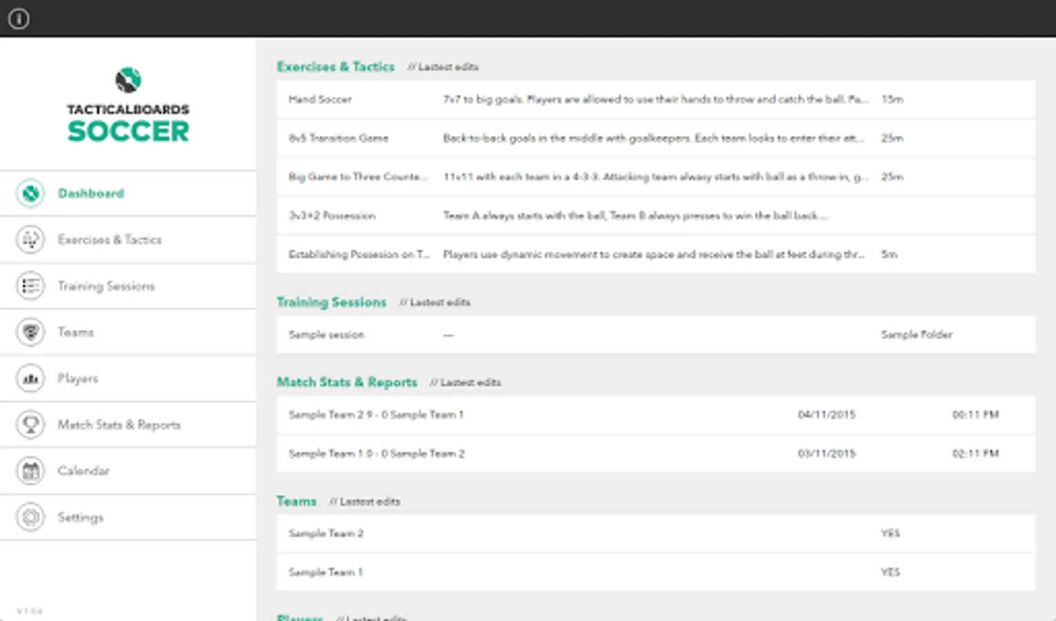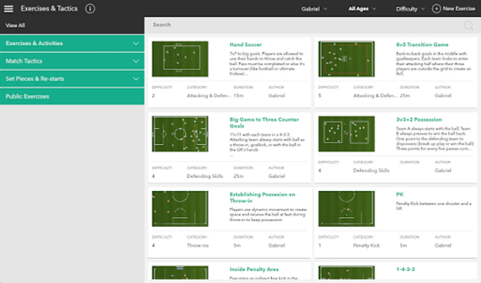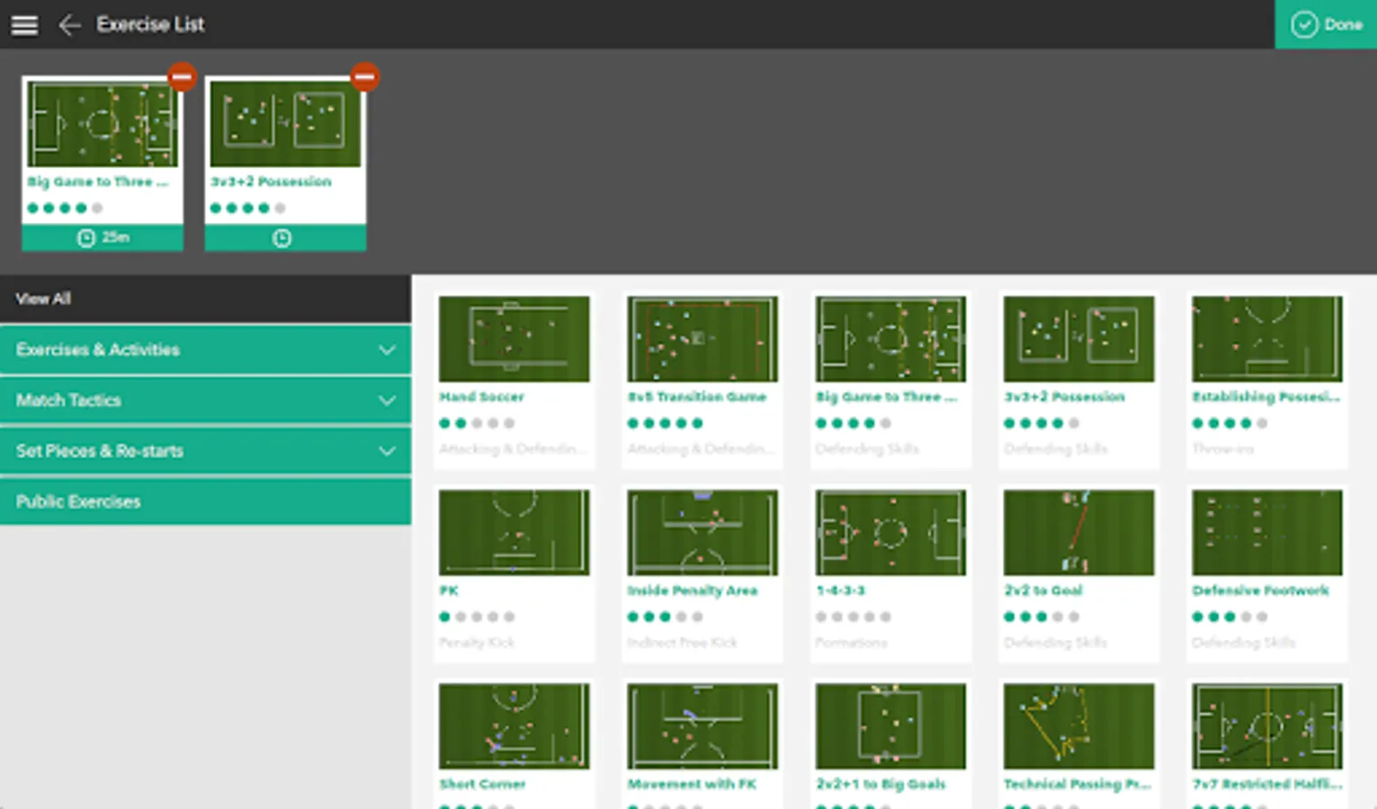 All of your exercises, set pieces, line-ups, etc. in a single place