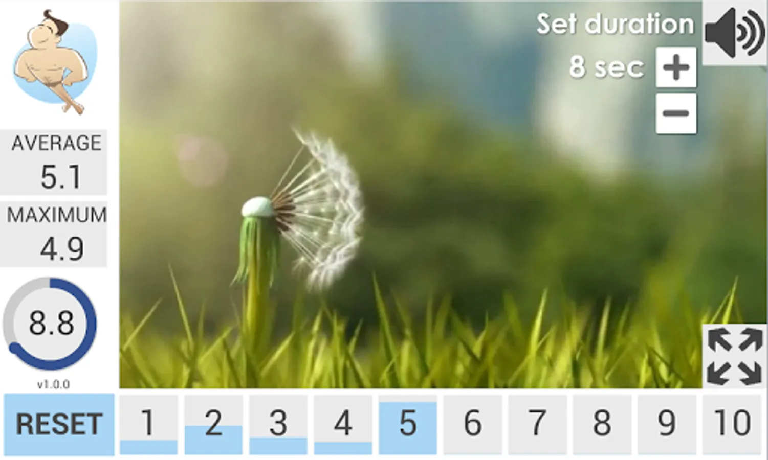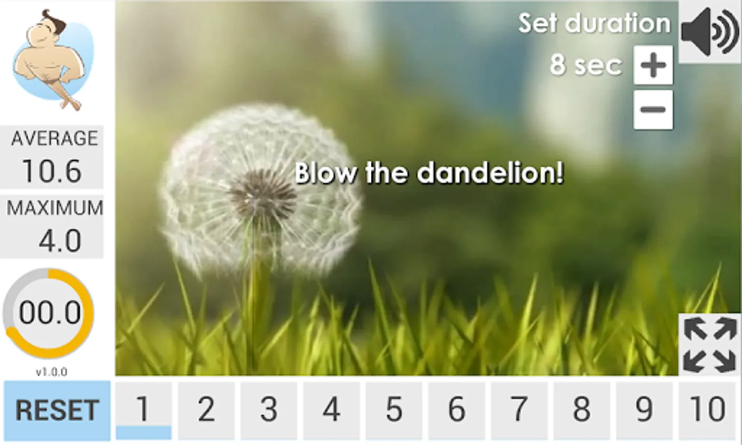 Make a long exhalation to blow away the dandelion.