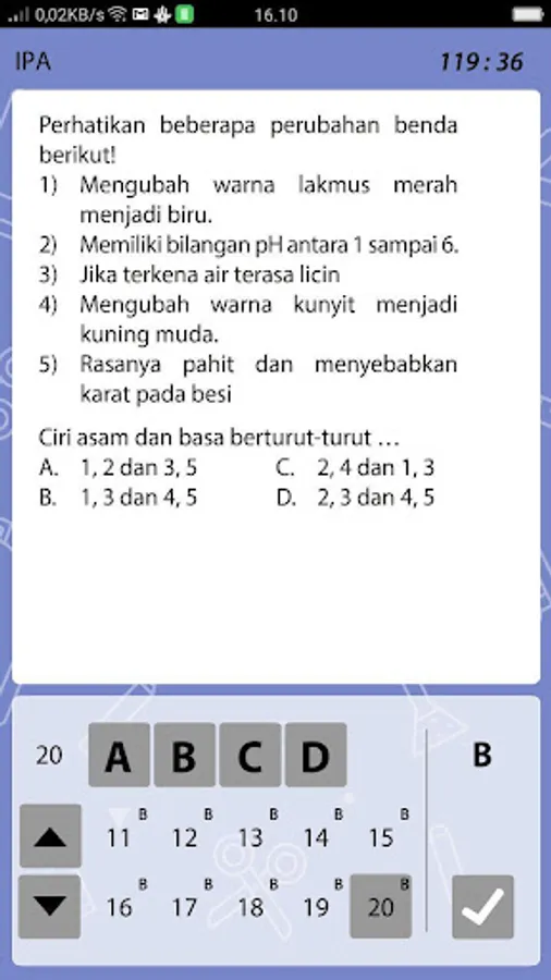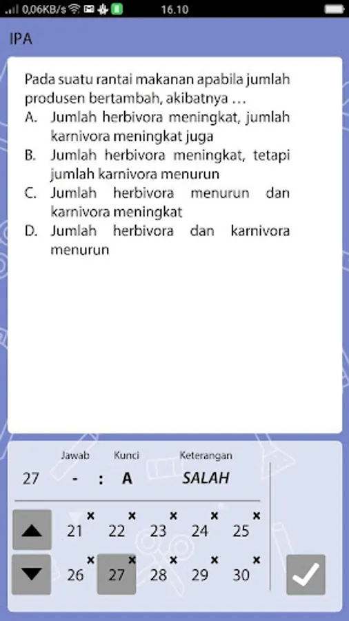 Practice questions in mathematics, science, b. Indonesian, and English.