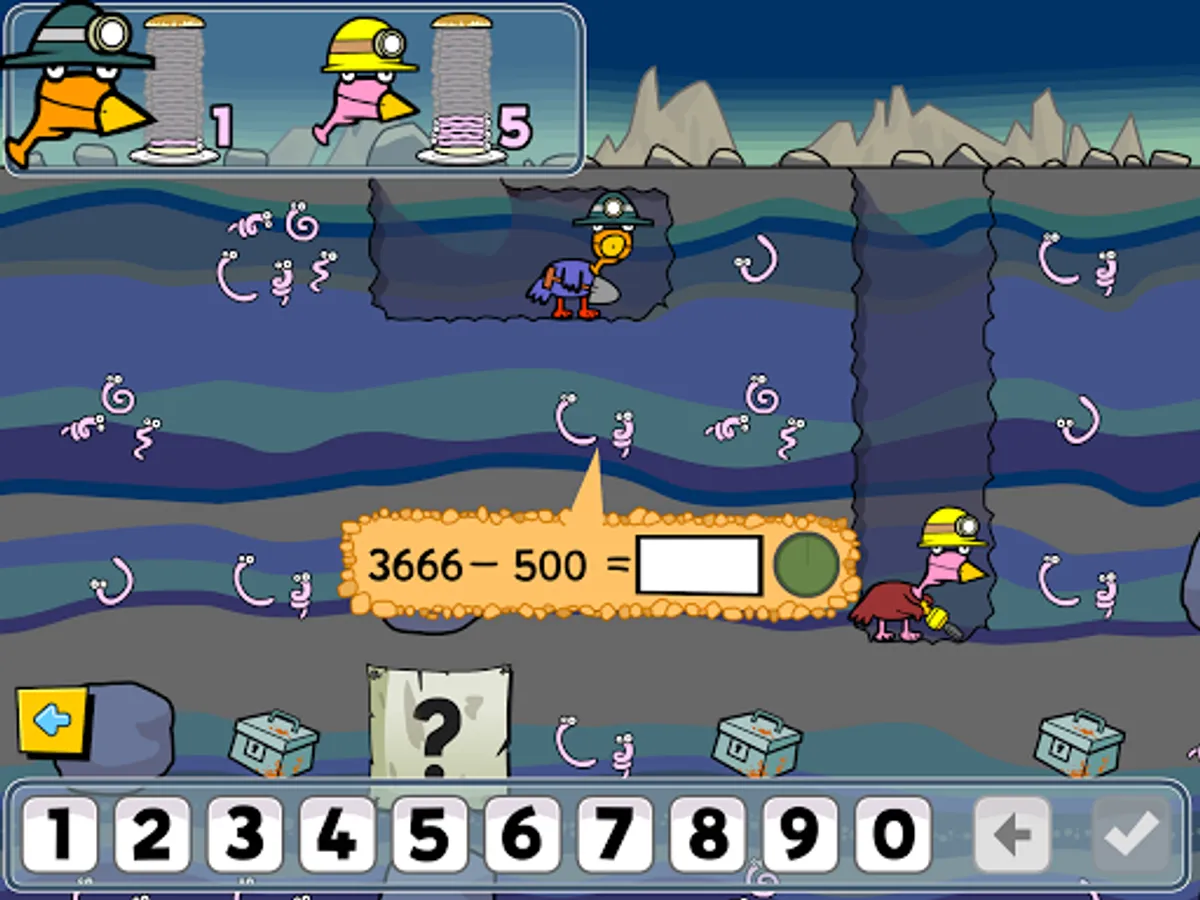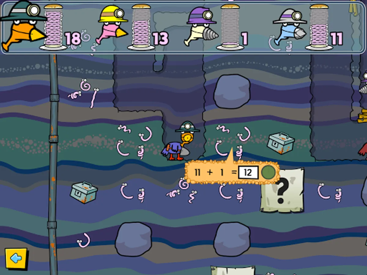 Help the chicken to dig up worms! Play alone or against your friends. The first to collect twenty worms wins! Collect worms by answering maths questions - the more worms - the harder the question. There are also surprise bonuses to discover in the boxes. Six difficulty levels suitable for children aged 5 to 11. You may want to have a piece of paper and a pencil at the ready to help you work out the harder questions! Excellent for developing strong mental maths skills!