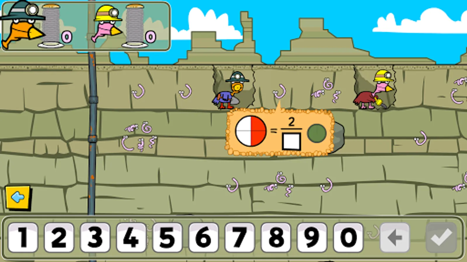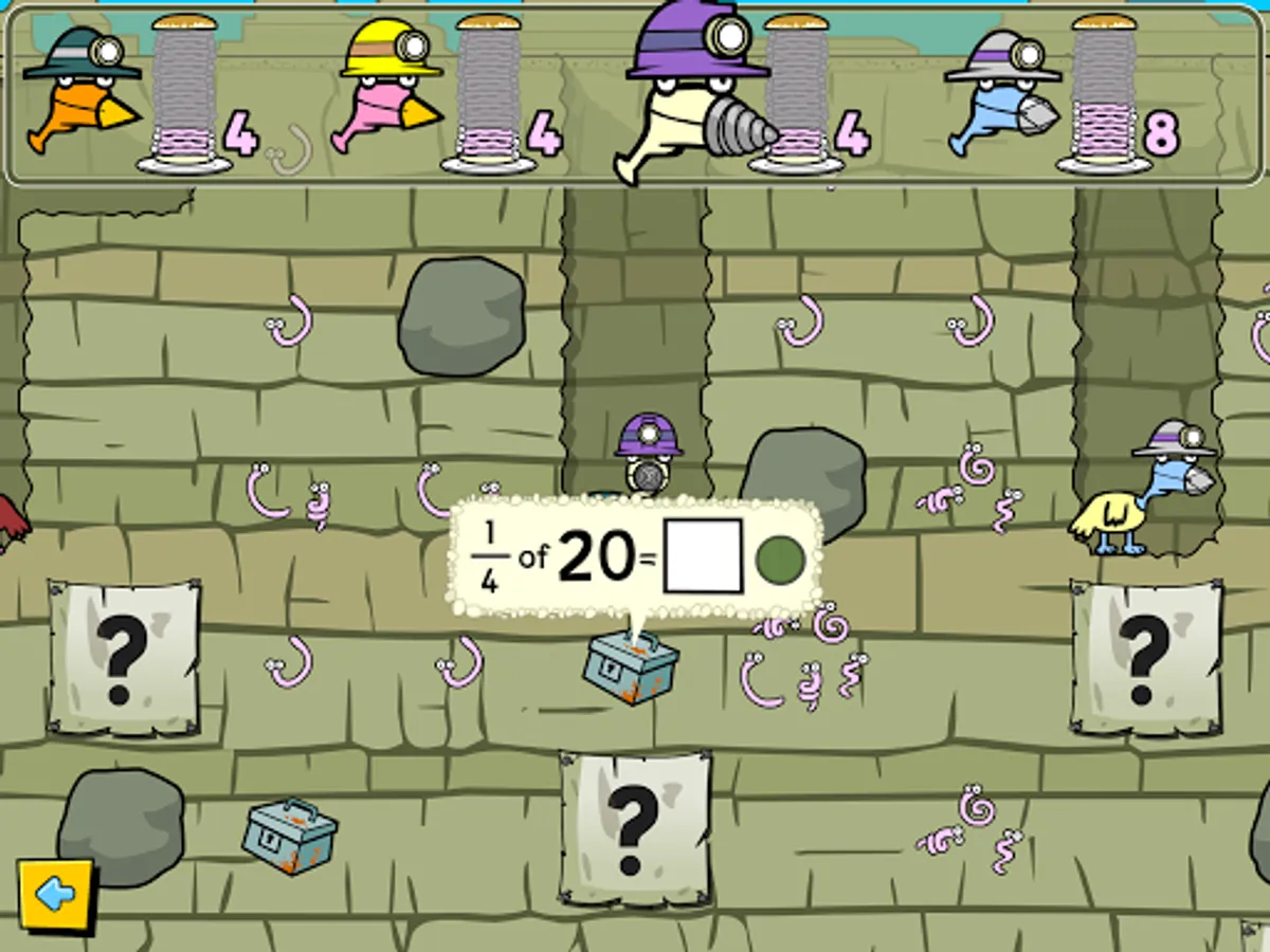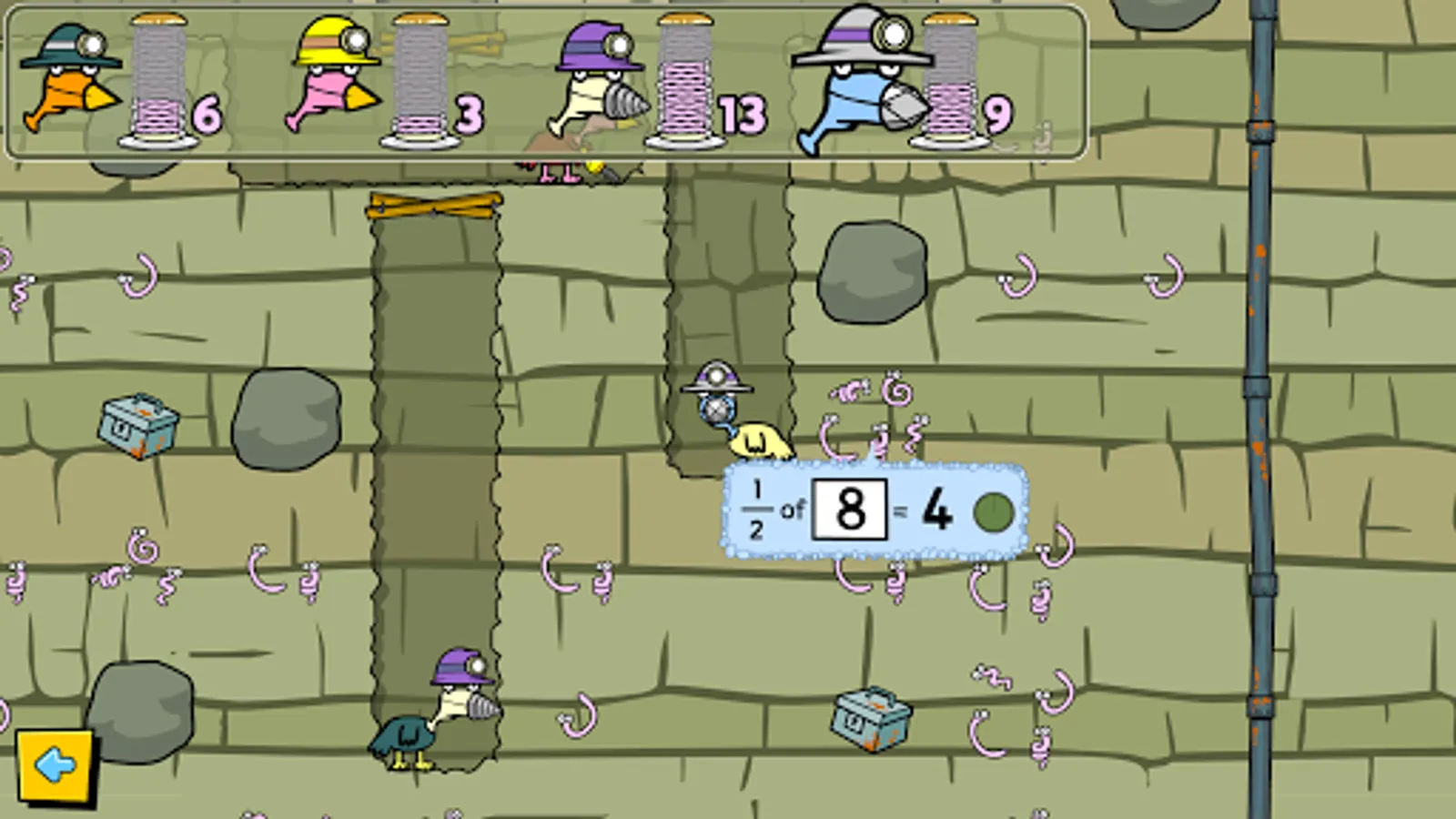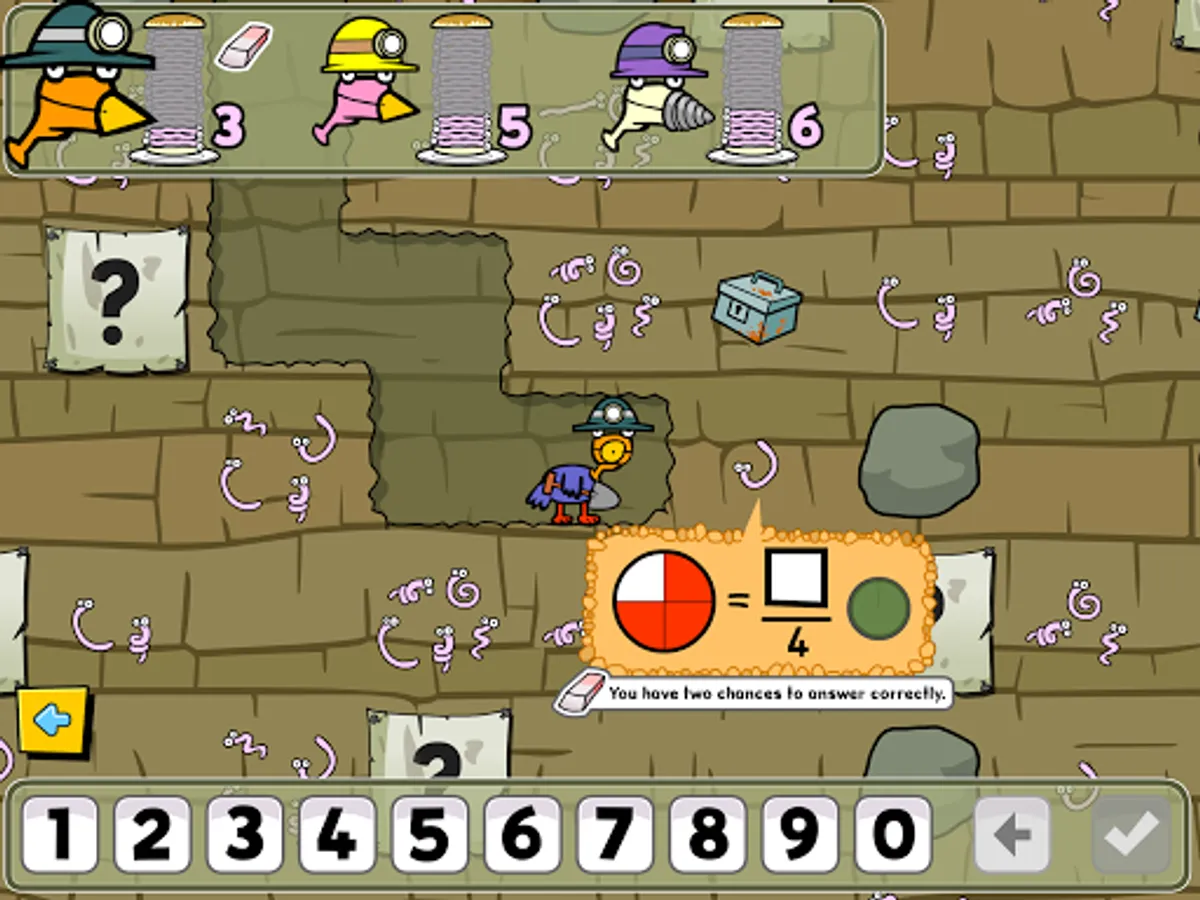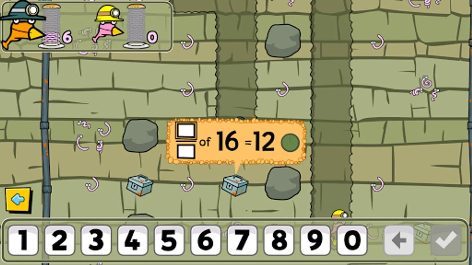 Help the chicken to dig up worms! Play alone or against your friends. The first to collect twenty worms wins! Collect worms by answering fractions questions - the more worms - the harder the question. There are also surprise bonuses to discover in the boxes. Five difficulty levels suitable for children aged 5 to 11. You may want to have a piece of paper and a pencil at the ready to help you work out the harder questions! Excellent for developing strong mental maths skills!
