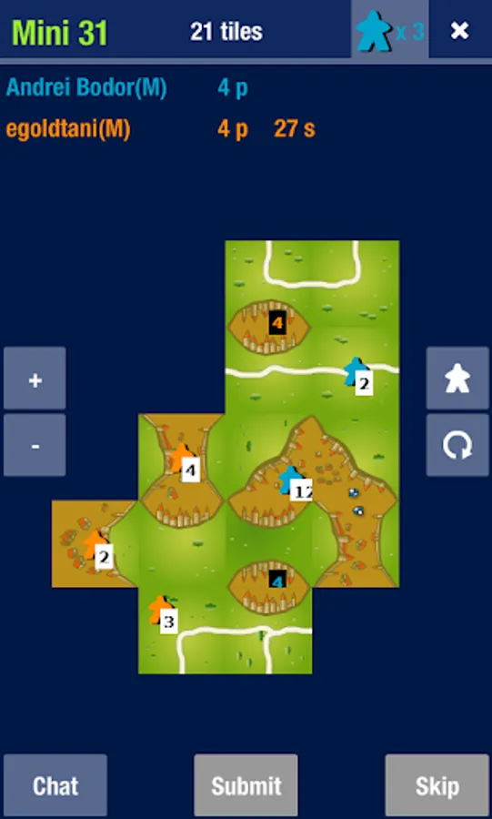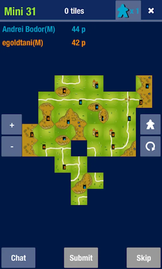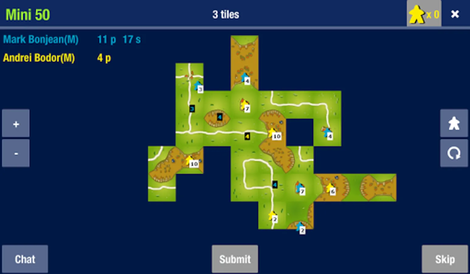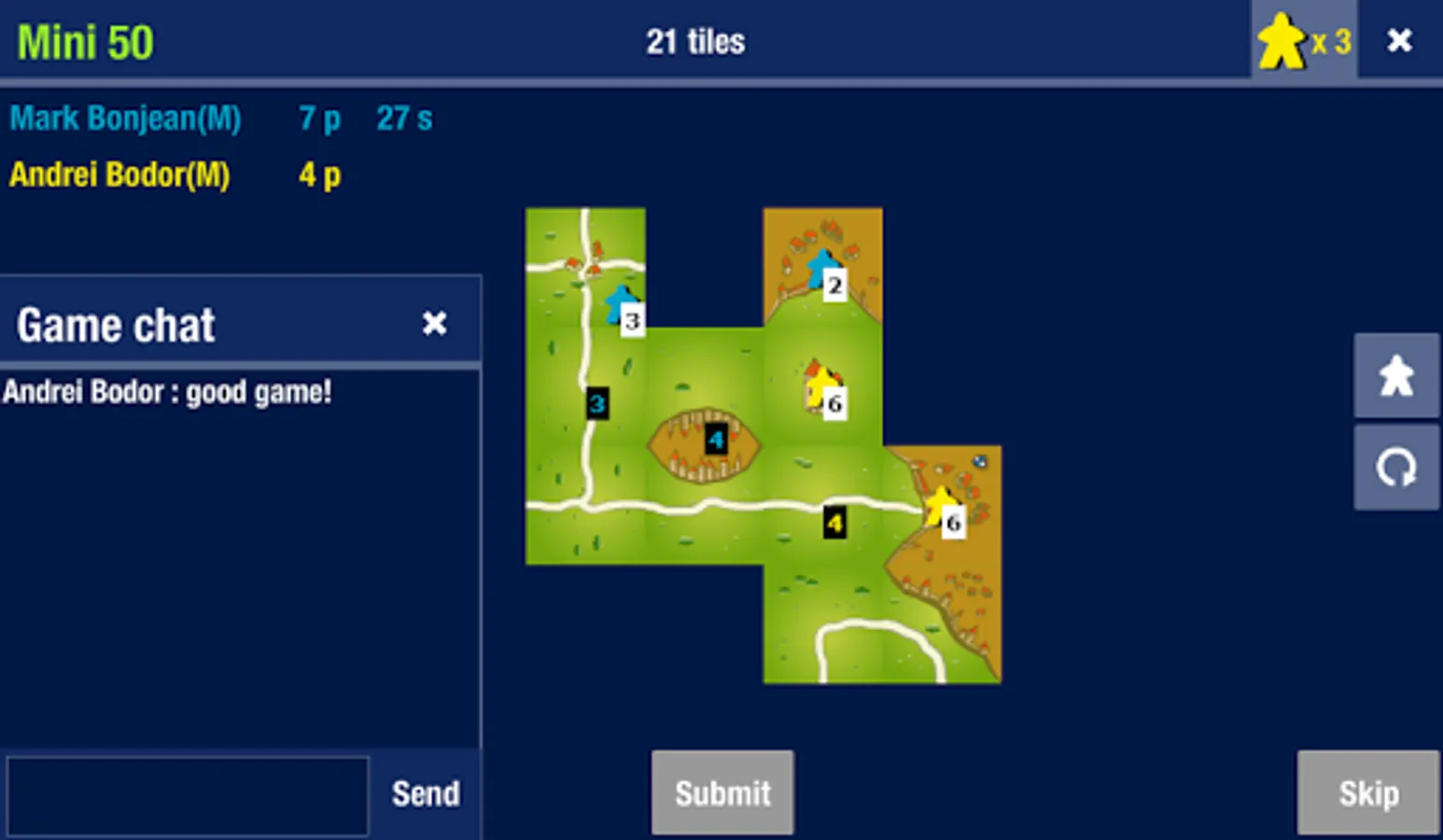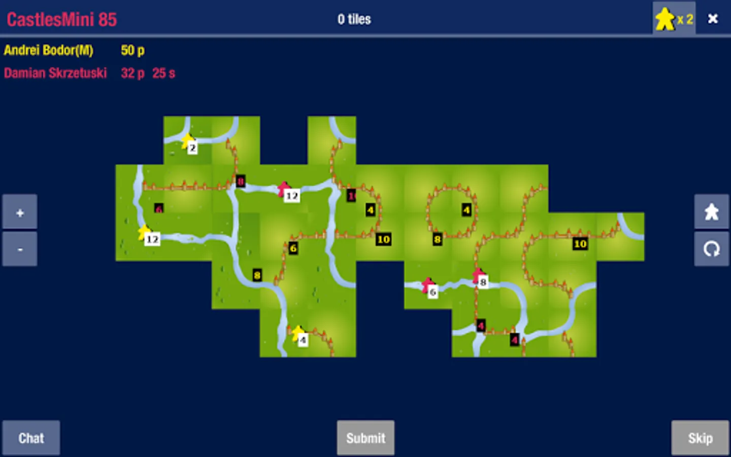 "Seven Castles" is a real-time, multiplayer board game in which you build castles, roads or cloisters by placing tiles on the board. You get points every time you complete a castle, road or cloister which you have occupied by placing your follower on it.