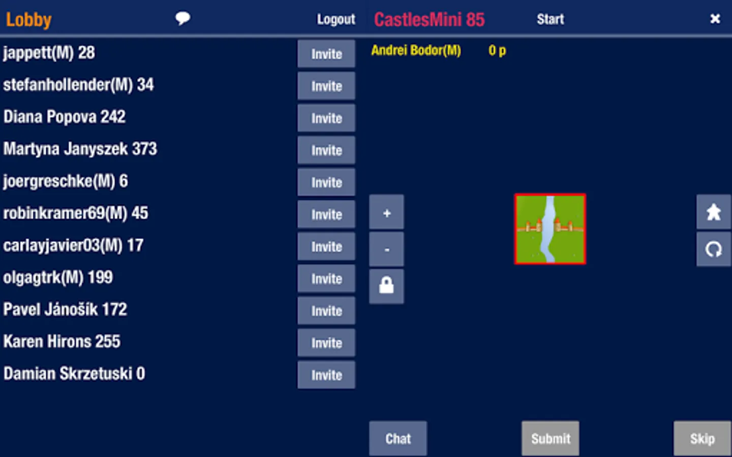 Here you see a list of users currently online - the Lobby list- and a list of the ongoing games - the Games list.