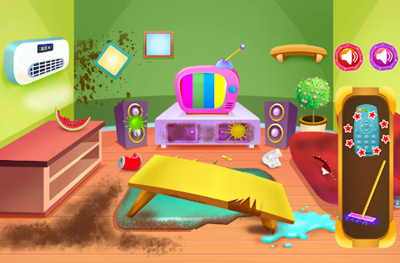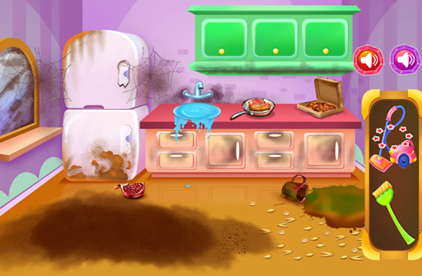 Girls games cleaning the whole house is a gift for the young ones, teaching how to clean their house in the absence of their parents and surprising them with the cleaning process.