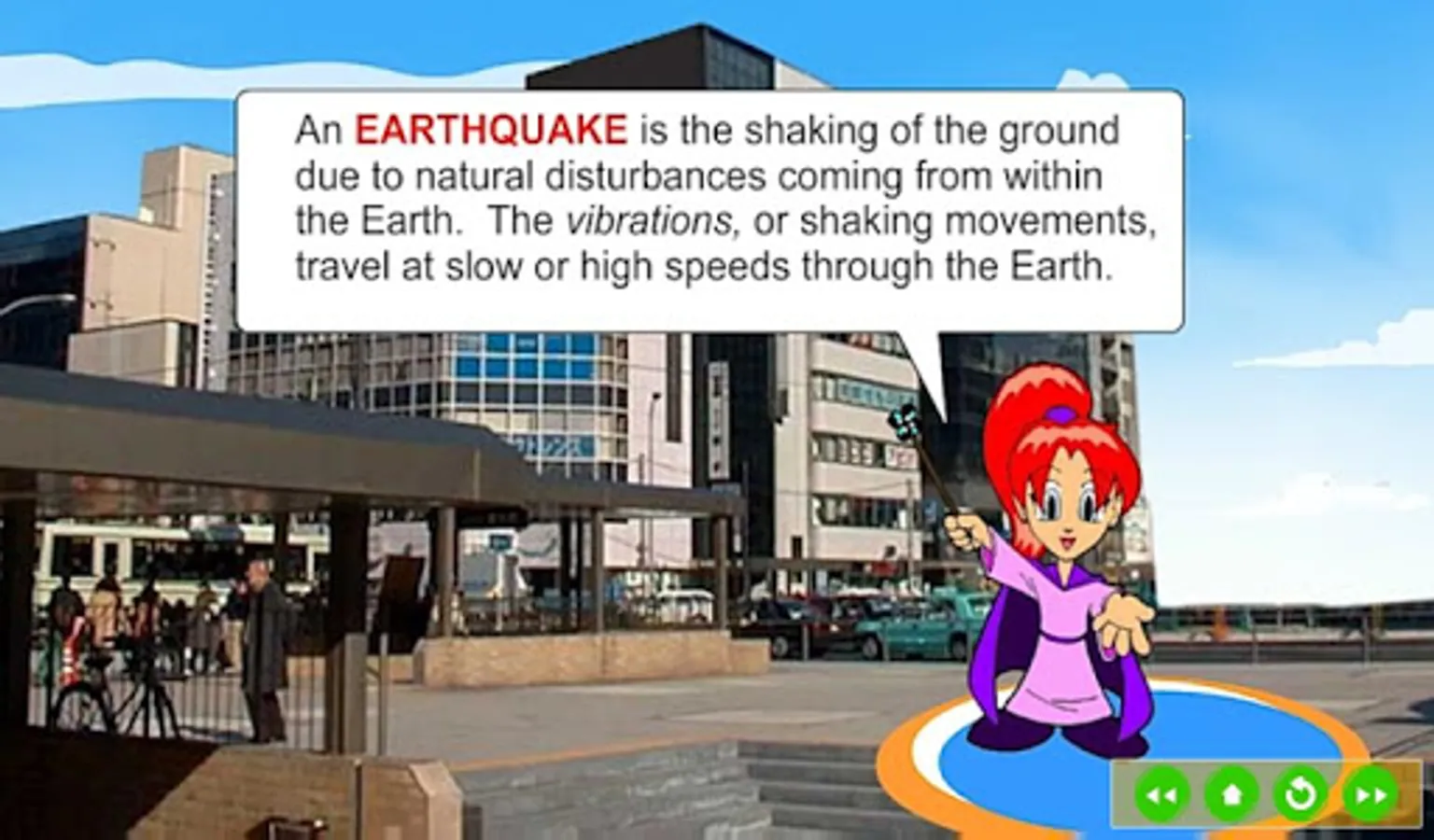 The module shows in animation how an earthquake occurs. It shows the origin of the vibrations and how it travels to the surface of the earth. The different reasons why earthquakes occur are explained and presented in animation in the module.