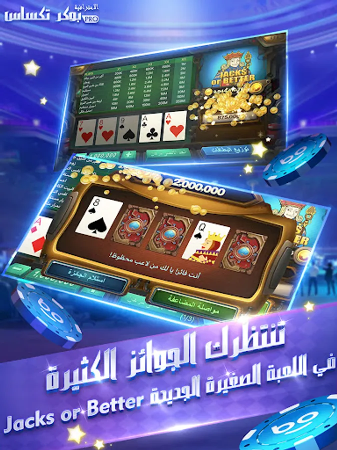 Poker Texas Professional Mobile: Free Game Arab includes millions of Arab players from different parts of the Arab world considers this free game is one of the best and finest games in Arabic where a lot of competitions and achievements available you can prove yourself in this game and impose your control and be one of the best players