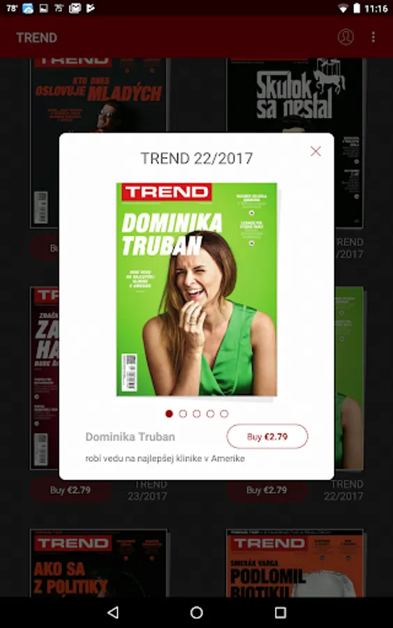 Niekoľko vydaní a ročeniek, napríklad TREND 46/2013, 44/2011, Manažér roka 2012, Slovensko a svet 2012, je v aplikácii dostupných na ukážku bezplatne pre všetkých.