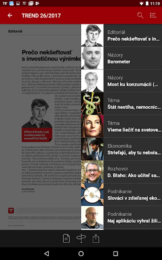Aplikácia umožňuje čítanie TRENDU v originálnej magazínovej forme, ktorá je obohatená o interaktívne funkcie a doplnkový obsah. Ak uprednostňujete čítanie v textovej forme (vhodnejšej pre malé displeje), navštívte responzívny web TRENDU, ktorý obsahuje aj kompletný archív týždenníka TREND.