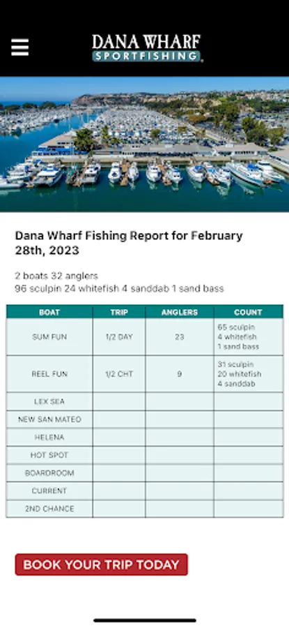Our handy app allows you to get the daily fish count for Dana Wharf Sportfishing in Dana Point, California. Get the latest information no matter where you are day or night.