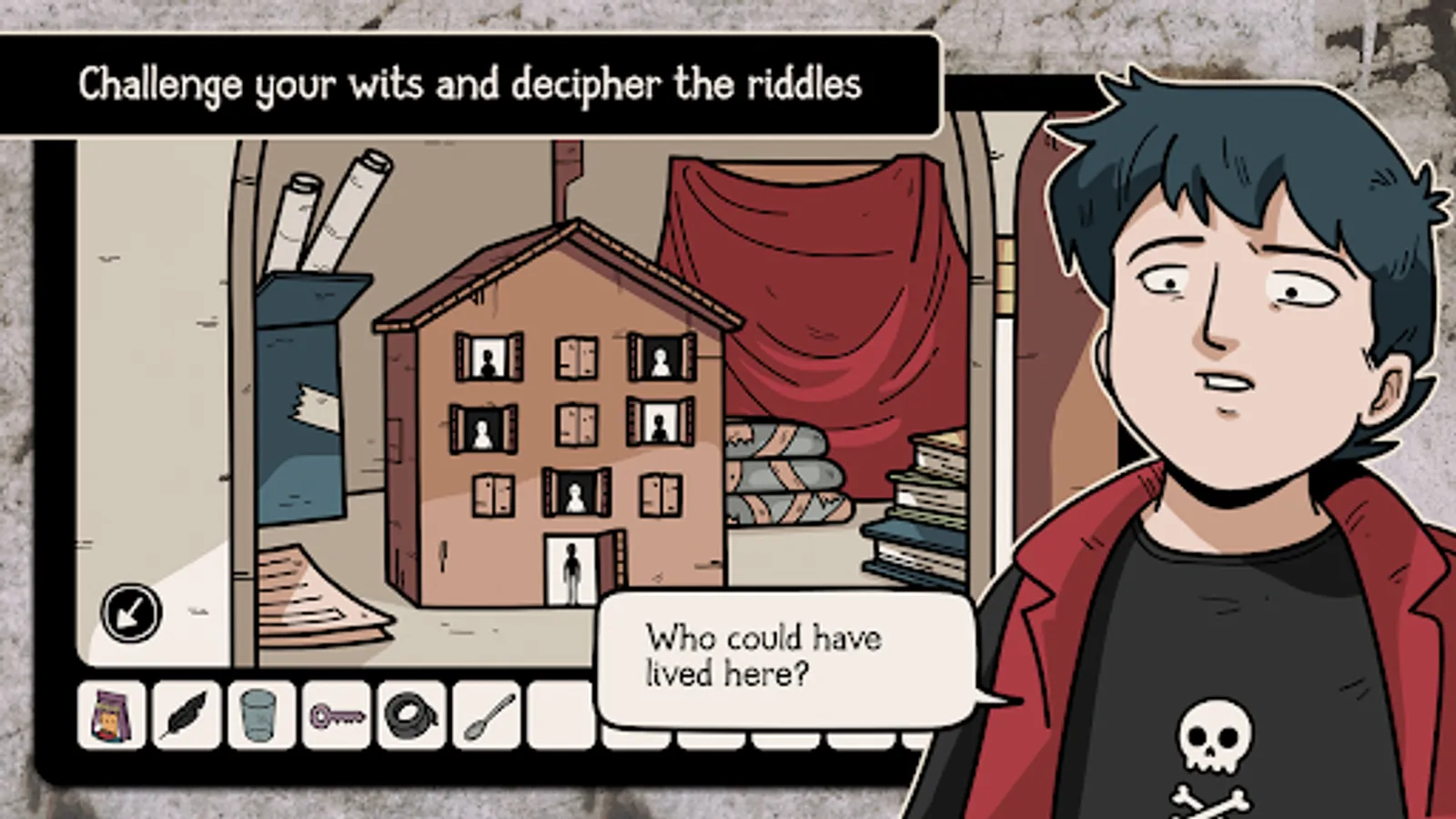 Simply tap objects on the screen to interact with them. Find useful hidden objects. Some objects can be combined to create a new one. Pay close attention to the eerie environment to discover which object may be useful in your quest to advance the story.
