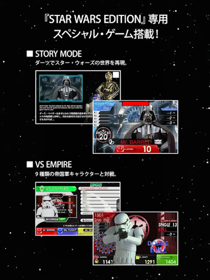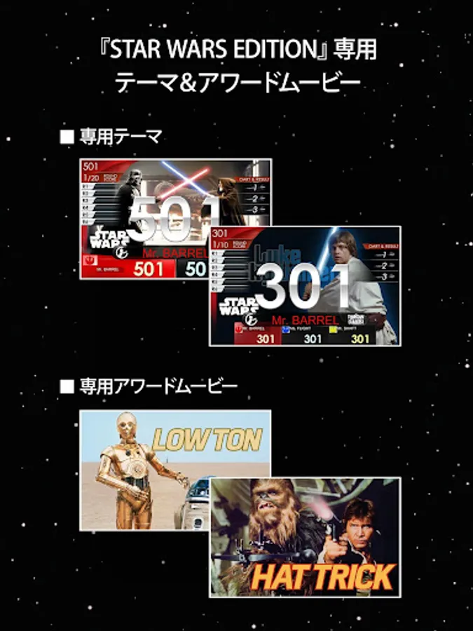To use, just set this official app and the darts board "DARTSLIVE-200S -STAR WARS EDITION- (sold separately)".