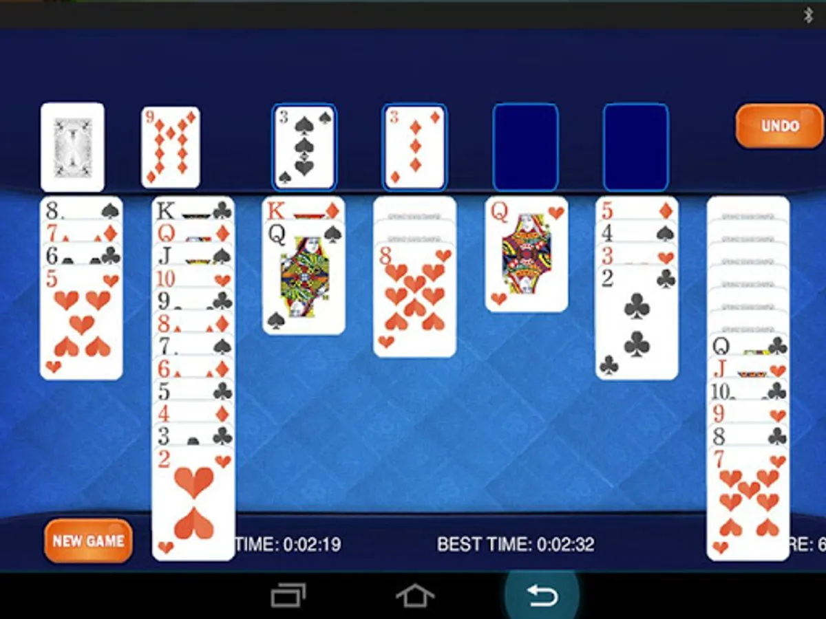 The stacks can be moved partially or completely. The undo button can help you out with any bad moves. Auto move function checks playable cards and stack them automatically. An empty space can be filled with King or a pile of cards with king. The game is finished when you stack all the 4 suits of the cards in the rectangular box.