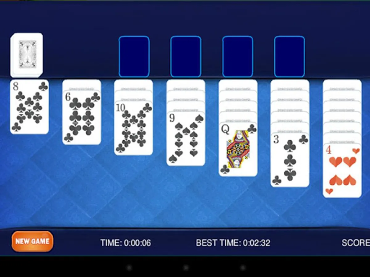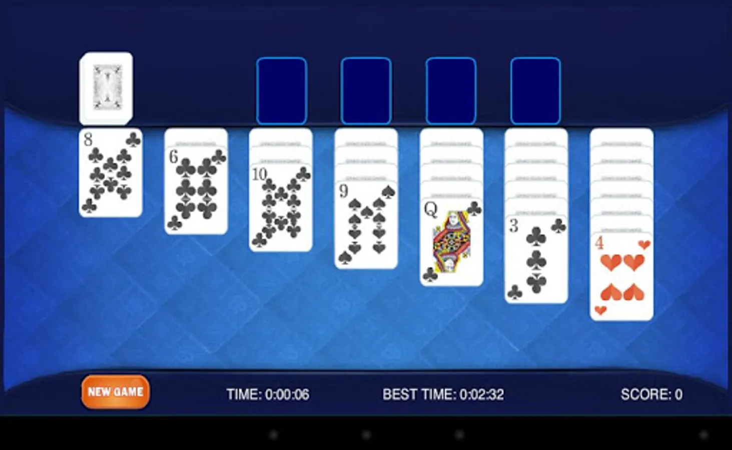 This Android game is crafted to fit all screen size from phone to tablet. The motive of the game is there are four foundations (light rectangles in the upper right) are built up by suit from Ace to King of the same suit. There are seven piles which can be built down by alternate colors (i.e. Red and Black), and descending in number starting from King to Ace.