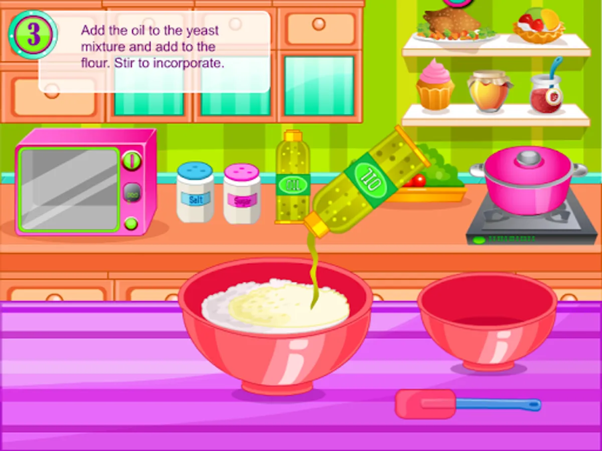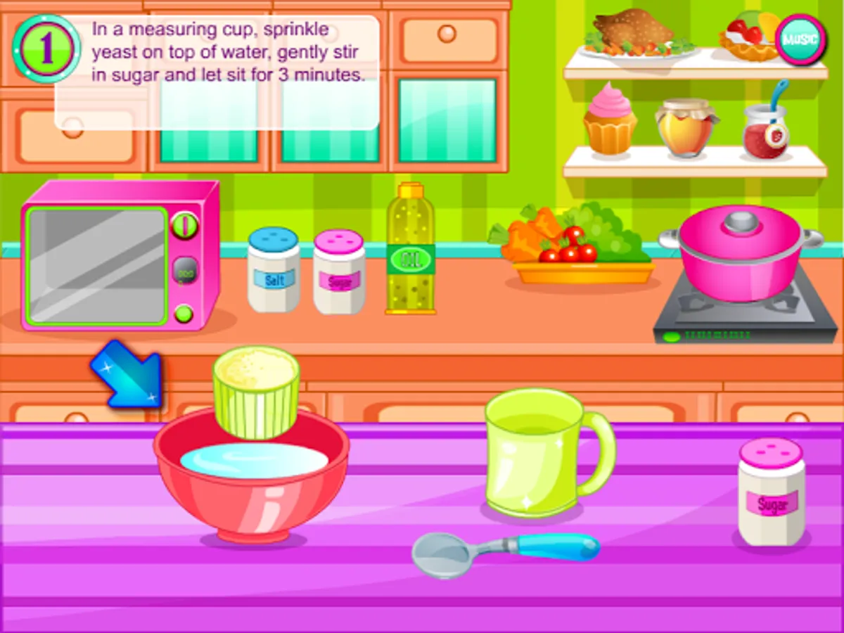1. You have to put in a measuring cup: yeast, warm water and sugar after mix them and let sit for three minutes.