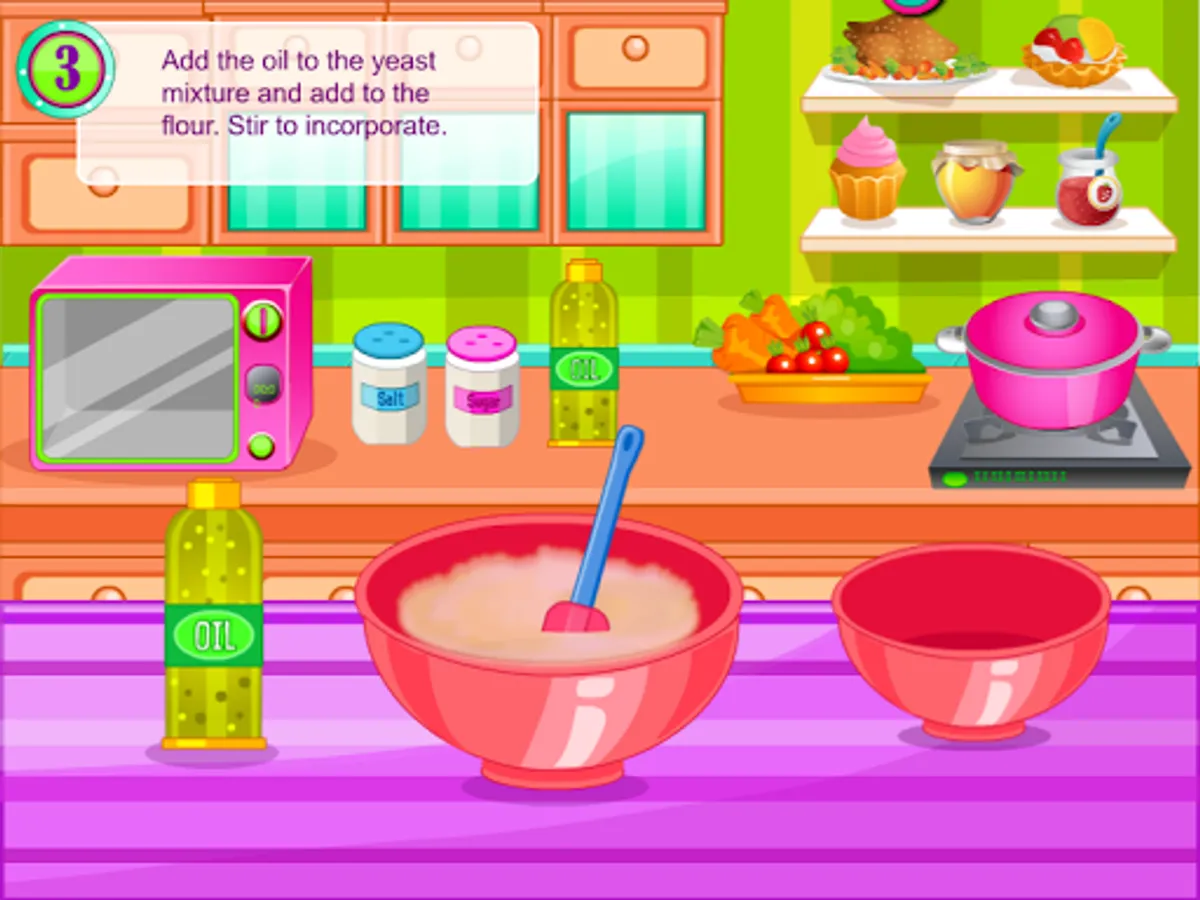 3. Add the oil to the yeast mixture and add to the flour. Stir to incorporate.