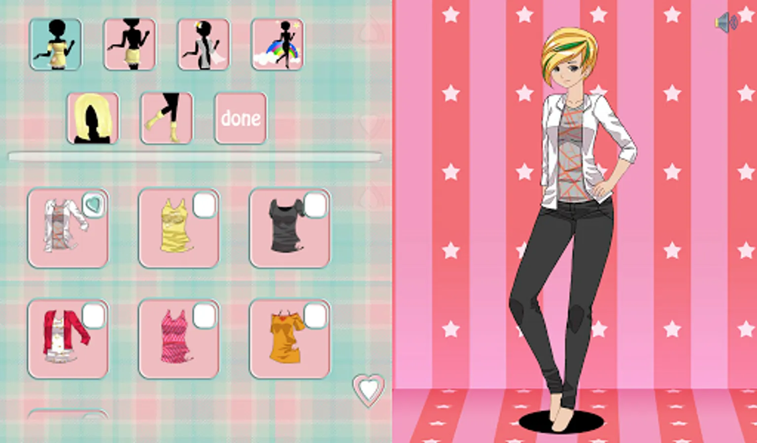 Dress her with the newest fashion from the most famous designers! Choose the top, bottom, hair, shoes, and accessories as pass by every part of the school!