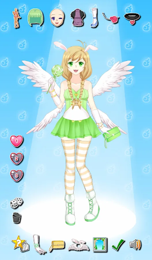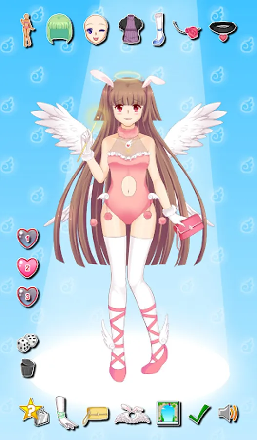 Adorn your bunny angel from head to toe and make her the most adorable of all. Pick from an array of unique styles--from hair style, facial expression, dress, wing, bunny ears and much more to create your own fashion! Save up to three (3) bunny angels and share them with your friends!