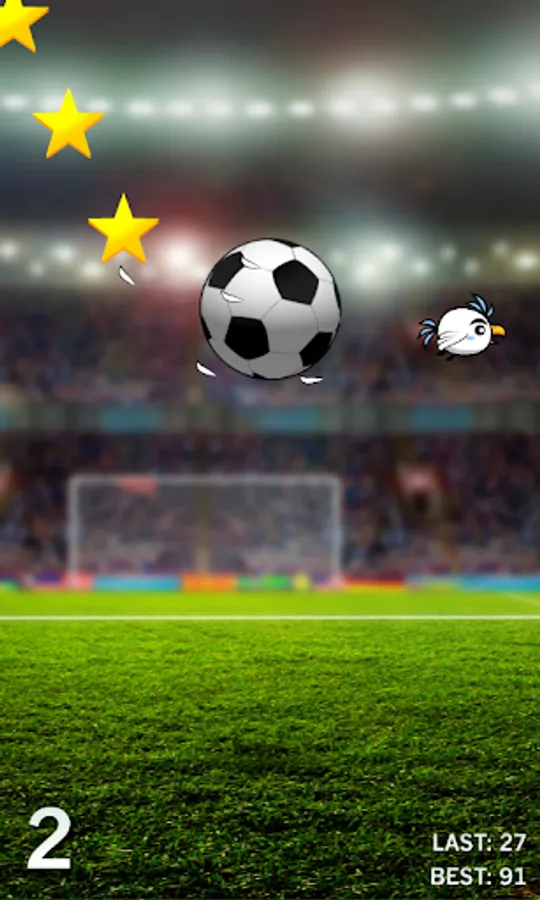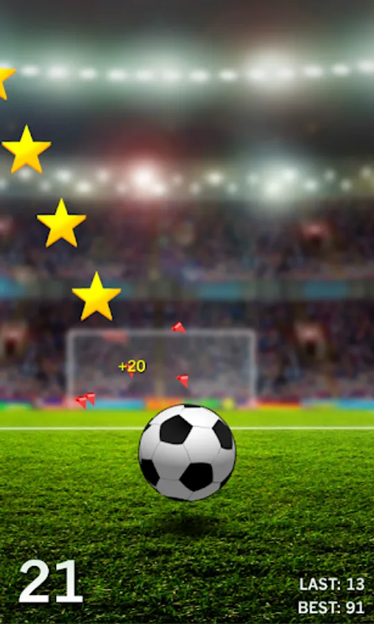 Keep the soccer ball up in the air in this kick ups game. Tap the football to begin. Don't let it hit the ground. Collect stars and jewels and avoid the flying birds.