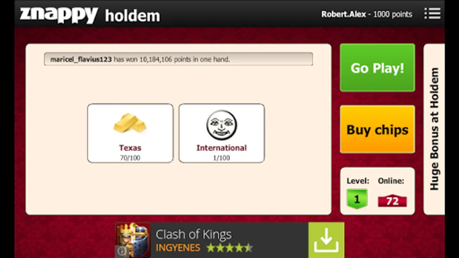 Download free Znappy Holdem from Google Play and enjoy the gift points, playing your favorite game with a new design.
