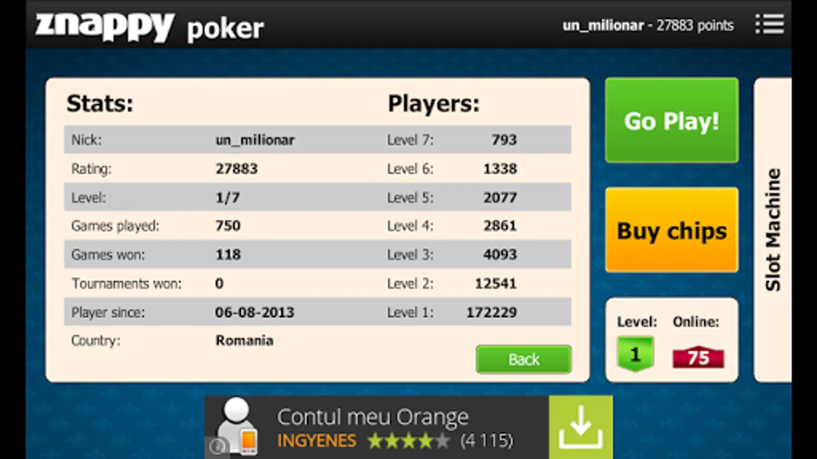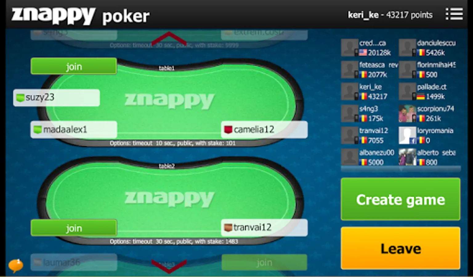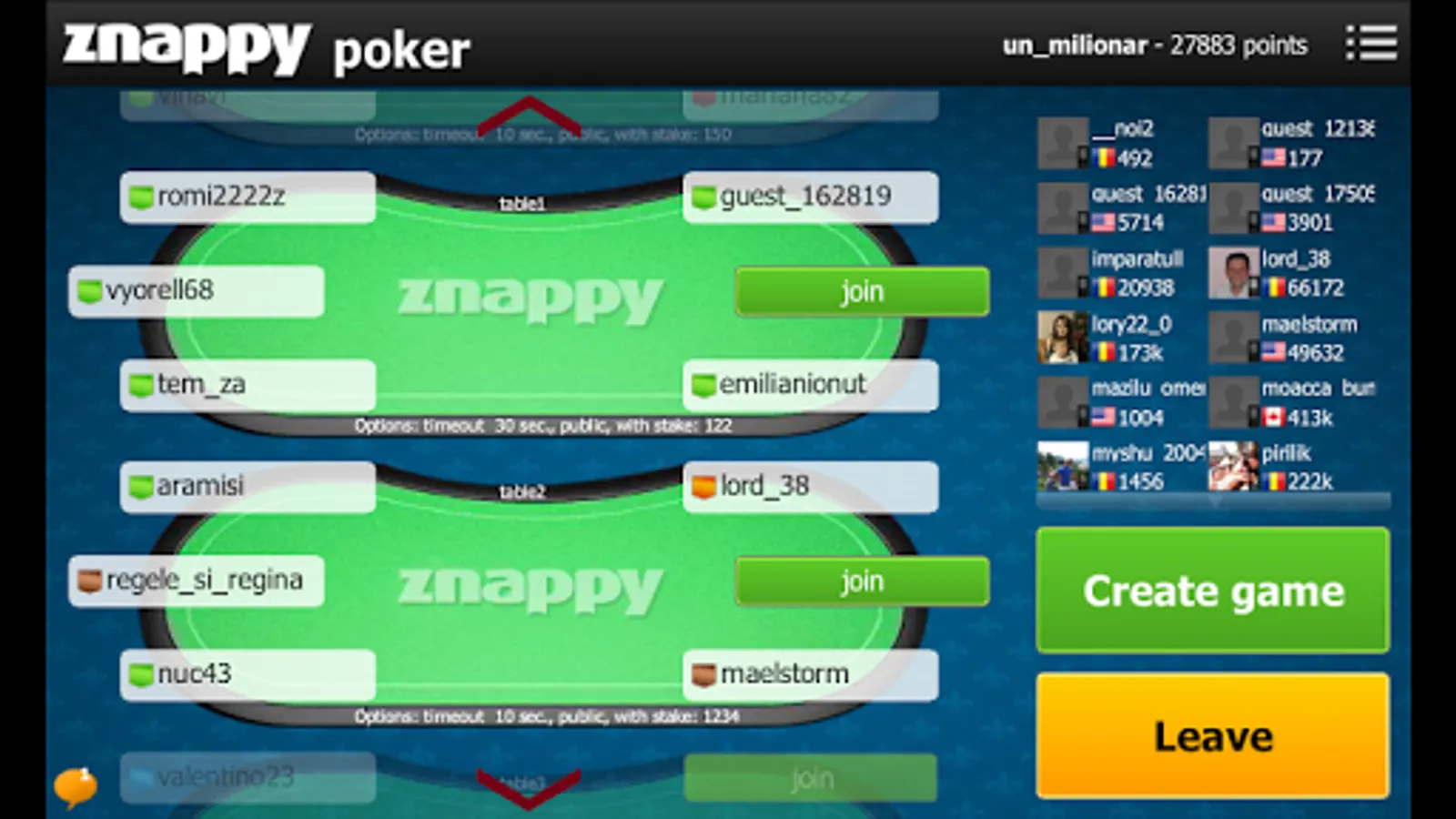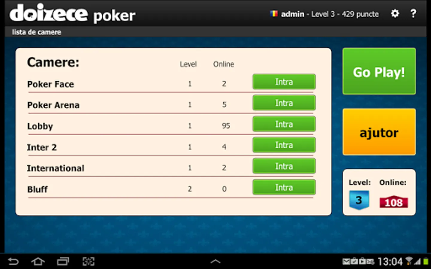 Poker DoiZece is the mobile application of http://poker.doizece.ro/. Easy to access, fast and free: the player logs in with username and password or login with Facebook account. Entered in lobby, the player may choose to create a new table or may join the existing ones.