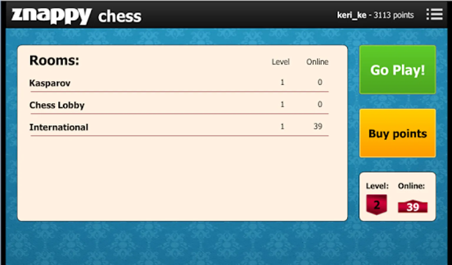 Points acquisition is possible using Buy points button in Chess Znappy App.
