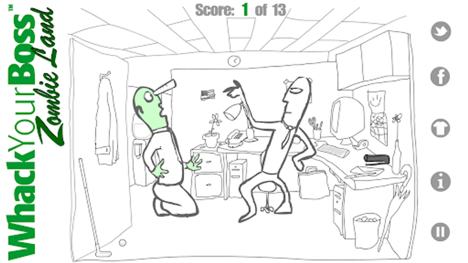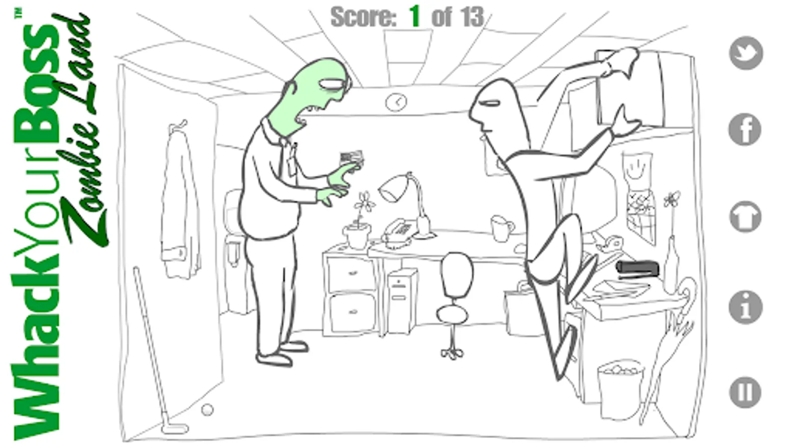 We licensed Whack Your Boss from Tom Winkler so that we can now offer you the ultimate zombie boss experience! Find the different ways to Whack Your Boss by clicking on items in the cubicle. Even in death the boss wants you to work harder and harder. Don't let him control you! Click on different office items and whack him! There are 13 ways, can you find them all?