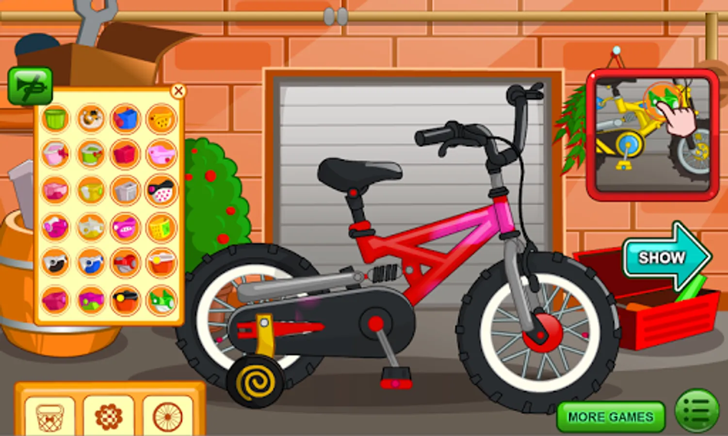 Riding a bike can be great fun for everyone to enjoy. With this bike cleaning game you can easily get your new bike prepared and fixed ready for your big day out at the park. You get to choose your very own bike to wash, rinse, and dry to make it all nice and clean when out and about. Repair the front tire and add a patch to the hole before pumping it up! Once done why not customize your bike to your personal favourite colours! By adding your very own custom basket to finish the look you can easily create the perfect bike that belongs to you.