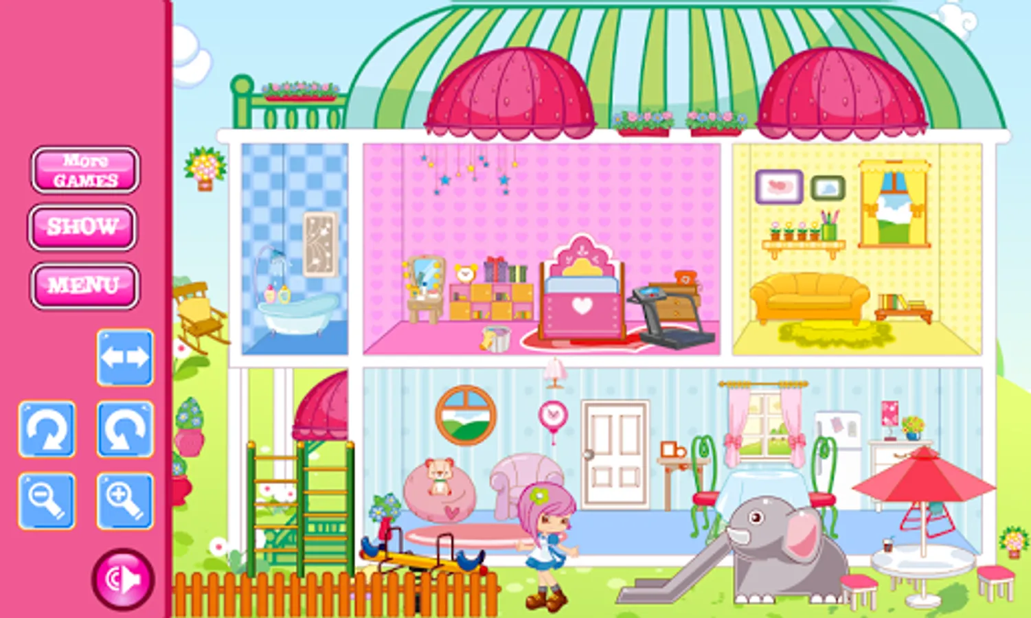 Creating a fun home atmosphere for your small people is something that can really make them feel warm and excited, and with this small people house decorating game you can easily create the perfect home for your small people to live in and enjoy. Here you can easily rearrange all the different furniture pieces to create the perfect living areas for your small people to spread out in. You can also decorate the front yard and place the play set and eating table out ready for great outdoor friend fun. When done you can then start over again and great new and exciting rooms with this small people house decorating game and have lots of fun with your friends.