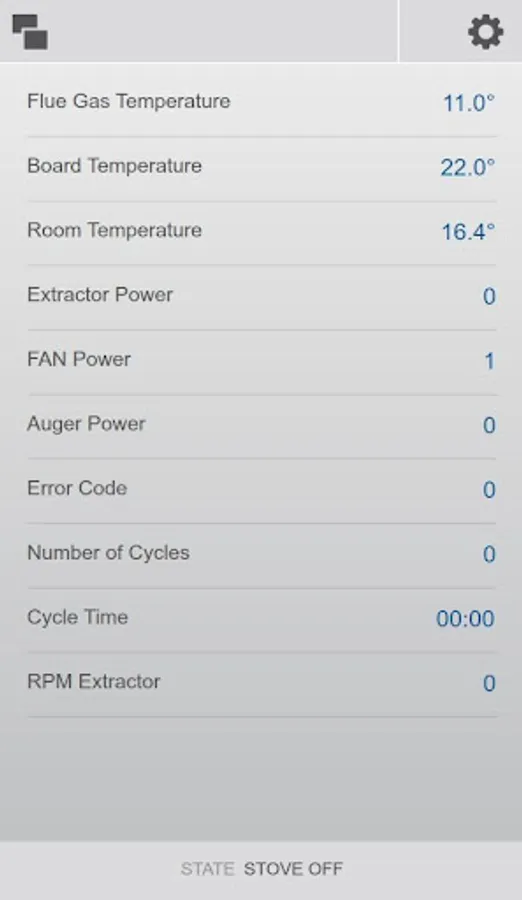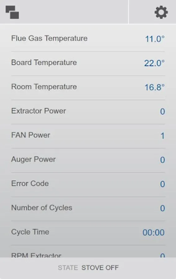 Have real-time access to various operating parameters, such as flue gas and room temperature (in the case of the stove), state of the room fan and auger, etc.