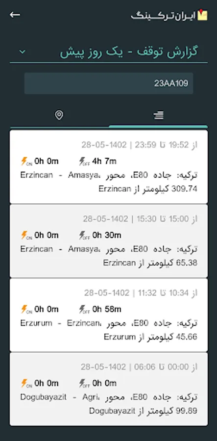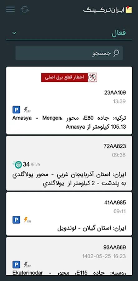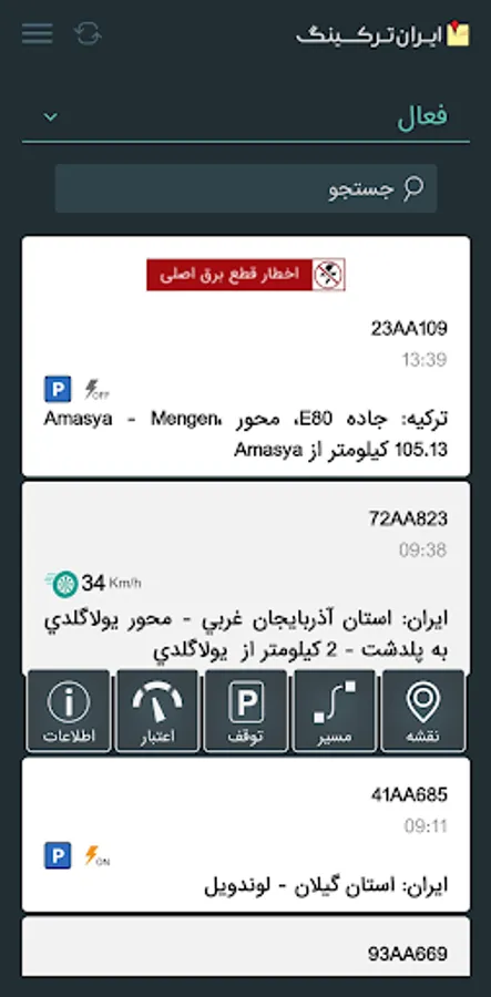 The "Irantracking" application provided by "Fragaster Control Communications" is one of the environments for viewing fleet information in the "Comprehensive Online Tracking Solution". Users of this system who have purchased their tracker hardware from this company and received a username and password can access the movement information of their fleet by installing the "Iran Trekking" application on a "mobile phone" connected to the Internet. The information that can be provided in this environment is as follows: