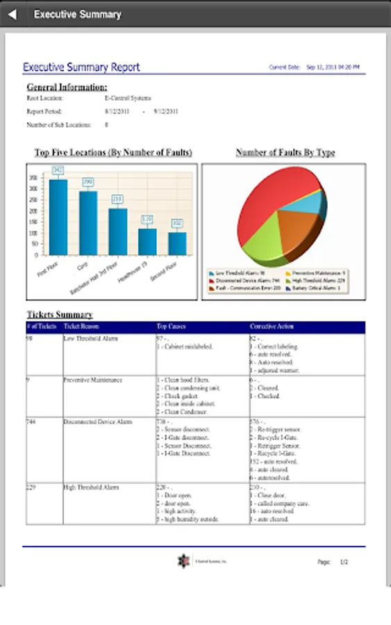 • The dashboard and Executive Summary Report compliment the software’s drill-down features which provide detailed high-level reports, including: location-based status, Daily Summary, Alarm History, and much more.