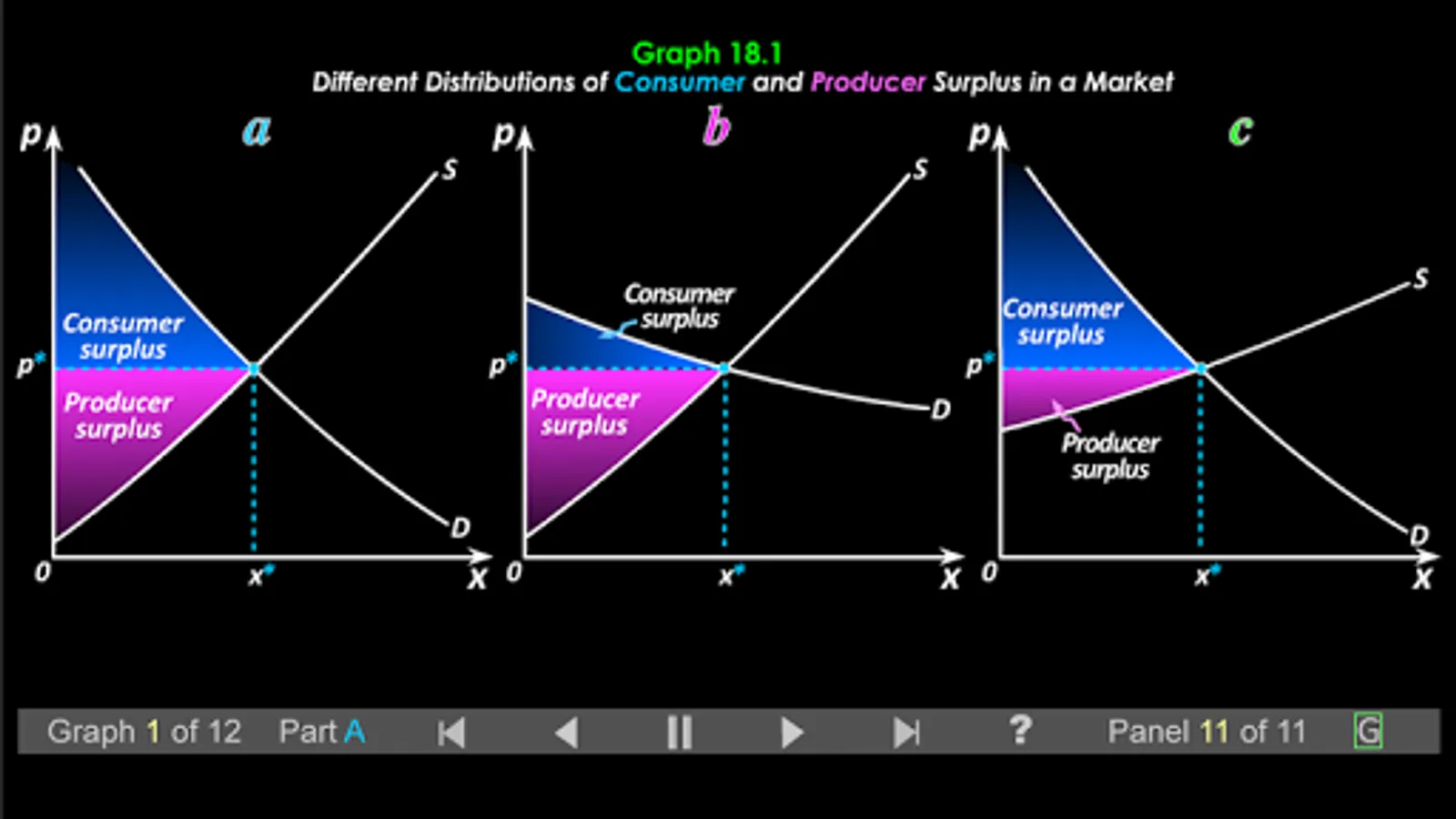 Animated and verbal exploration of simple markets with price floors, price ceilings and non-price rationing. Demand elasticity including perfectly inelastic and perfectly elastic curves as well as constant elasticity demand curves is covered.