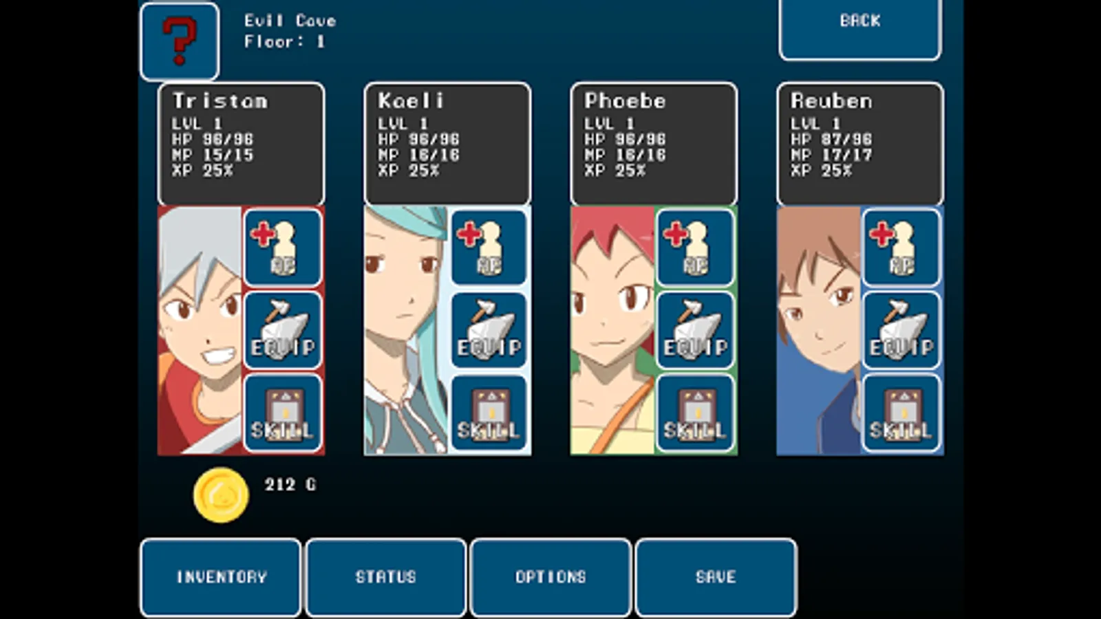 Crystal Story is a turn based rpg that uses a random dungeon generator. You control four characters and configure what skill sets they learn along the way. You can earn equipment upgrades that will help you traverse through Evil Cave by destroying monsters or playing minigames.