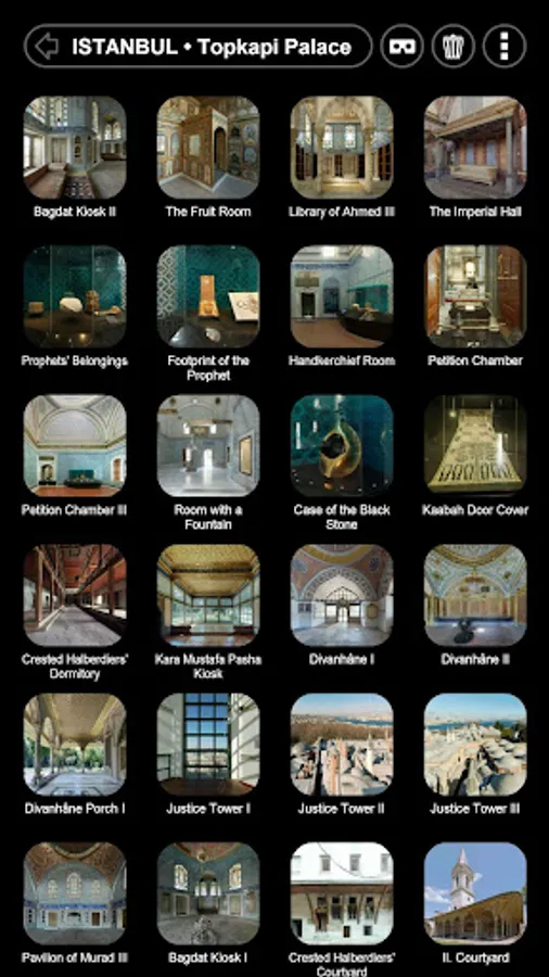 Virtual tours of landmarks from Turkey, Egypt, Saudi Arabia, Syria, Morocco, Kuwait, Yemen, Macedonia, Holland, Belgium, France, Italy, Greece and Space. Examine the marvels of Islamic architecture, visit mosques, tombs, palaces of sultans, museums, inns, baths, castles, towers, old houses, squares, parks, nature, religious sites, ancient cities, space and other places with more than a thousand 360 degree panoramic images in high quality. Go up the Eiffel tower, go inside the Egyptian Pyramids and even visit Mars! You will feel as if you are there...