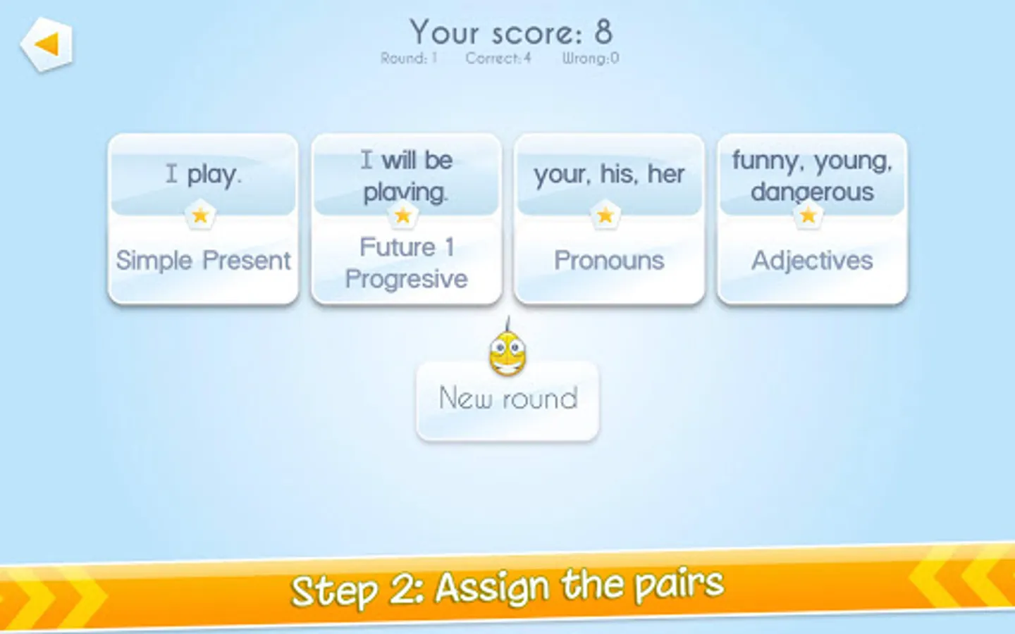 On your own in a race against time or against a challenging opponent - who will use the fewest number of moves to find the matching pairs? Who will collect the most stars and end up the winner in this grammatical duel?