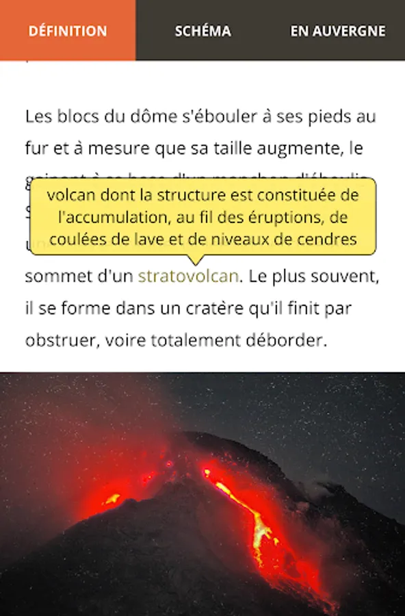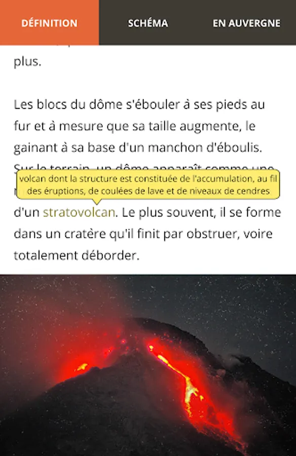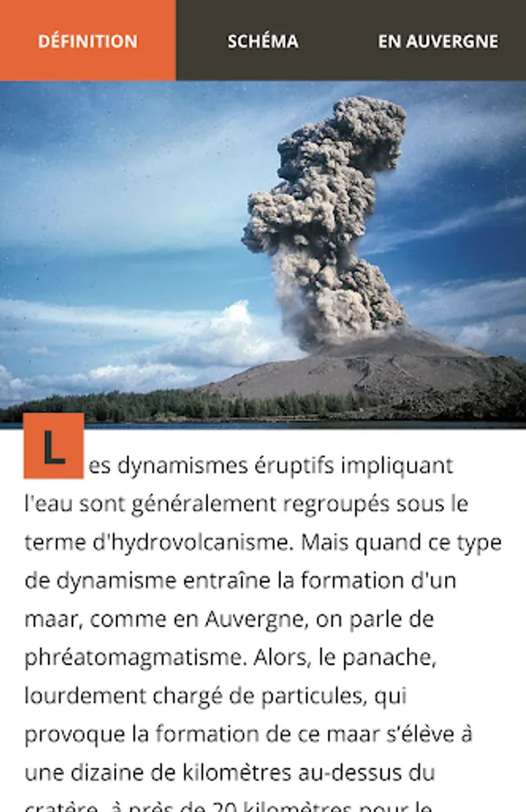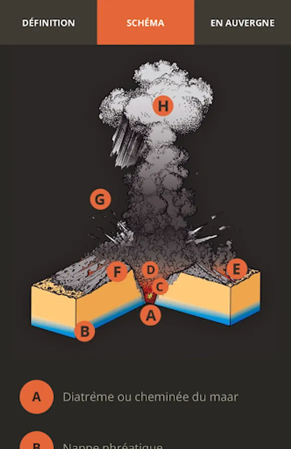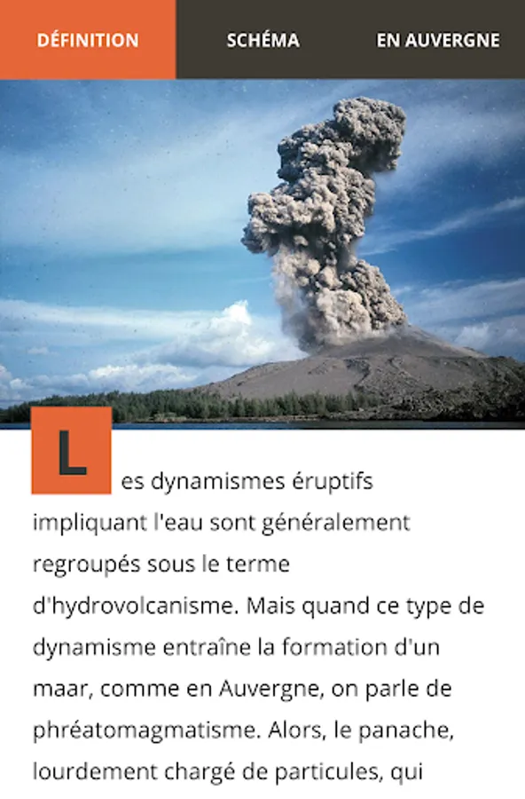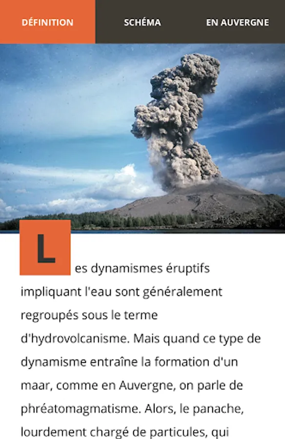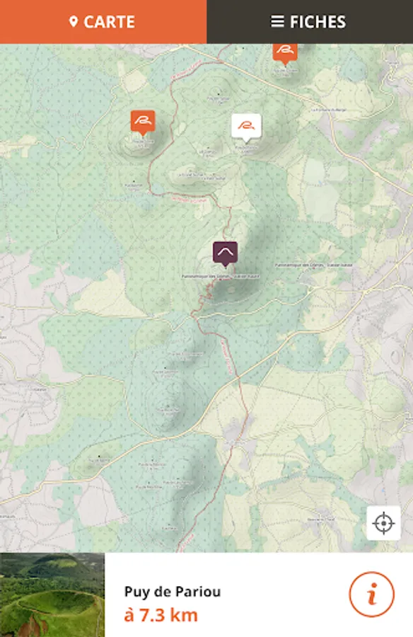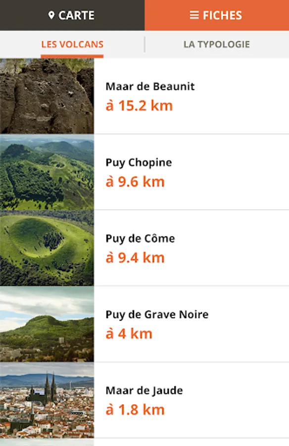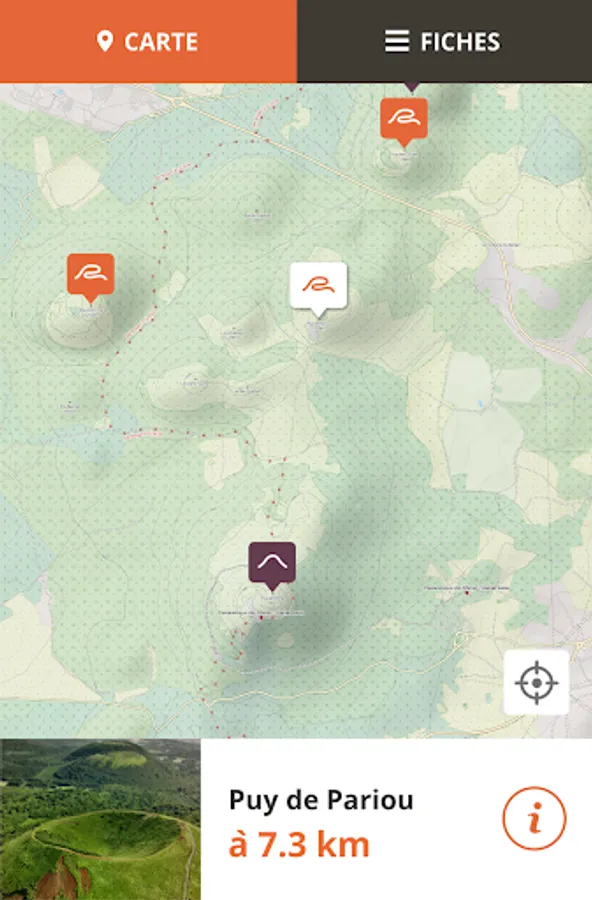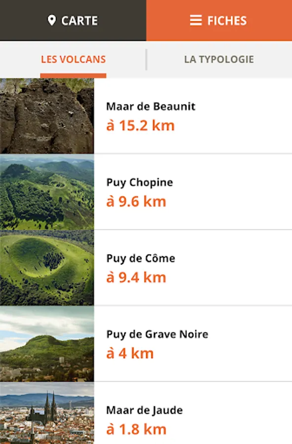 The app contains identification sheets of 18 volcanoes in the Chaîne des Puys, written by an expert volcanologist.