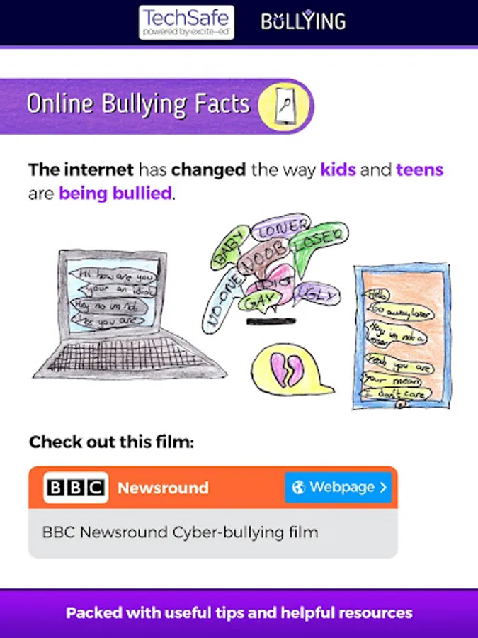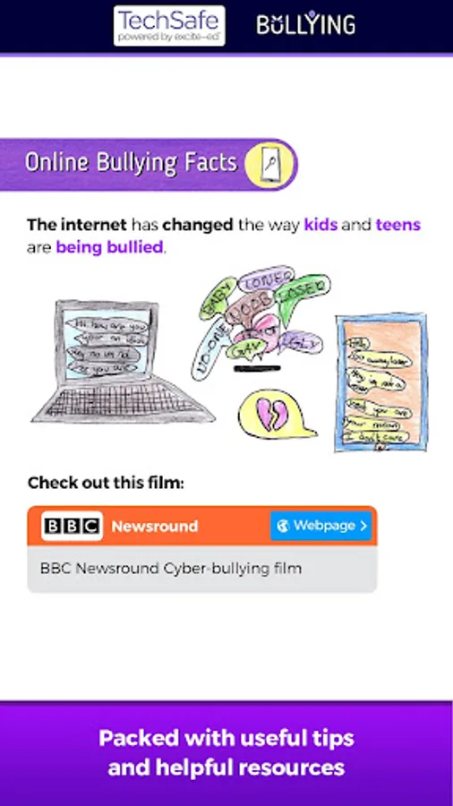 TechSafe - Online Bullying is one of a series of beautifully illustrated Internet safety information apps by UK kids and teens.