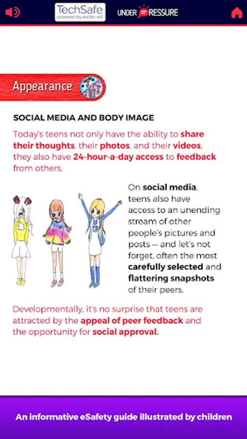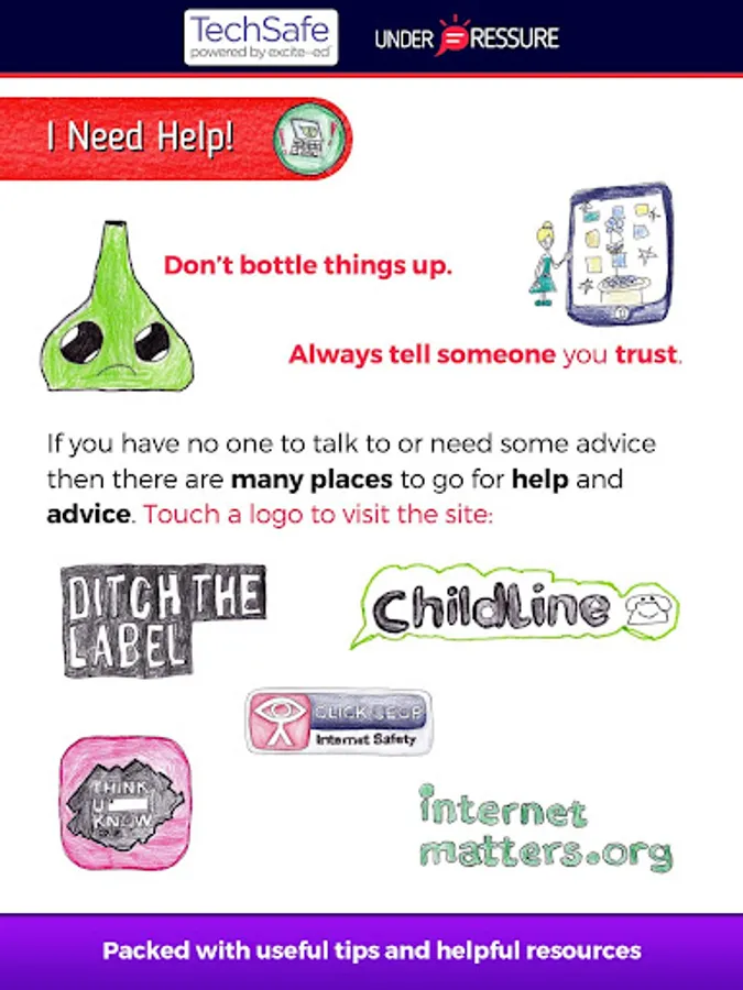 TechSafe Under Pressure is one of a series of beautifully illustrated Internet safety information apps by children for parents, carers, professionals, kids and teens.