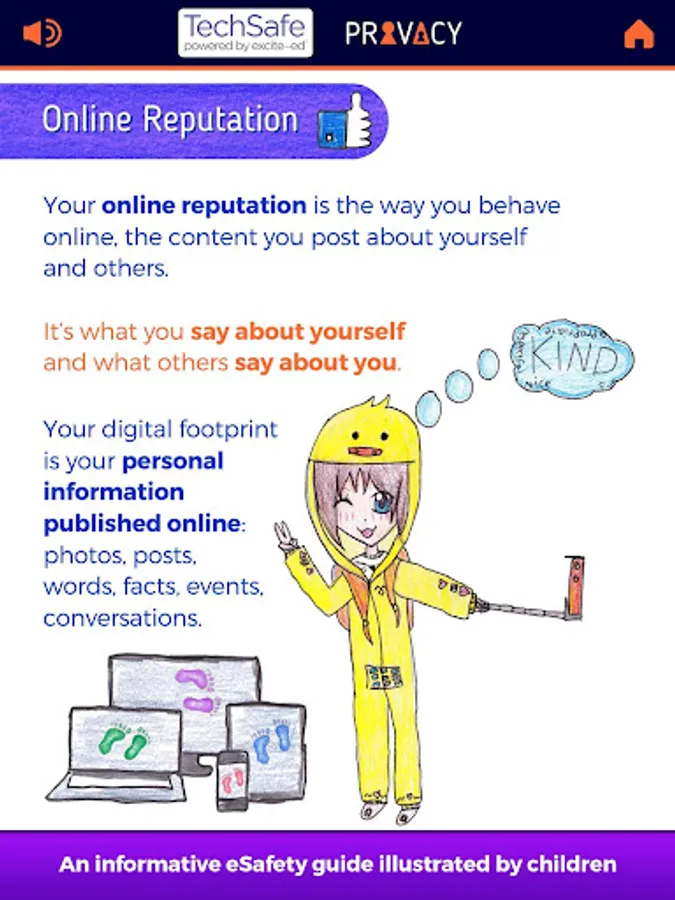 TechSafe Privacy is one of a series of beautifully illustrated Internet safety information apps by children for parents, carers, professionals, teens and kids.
